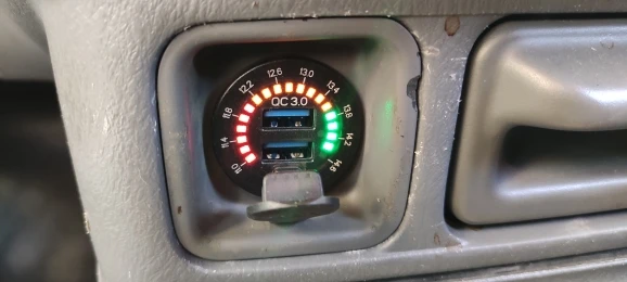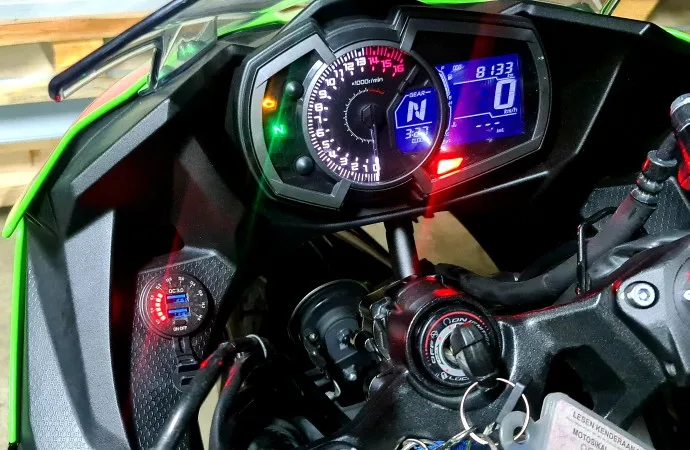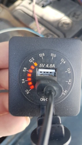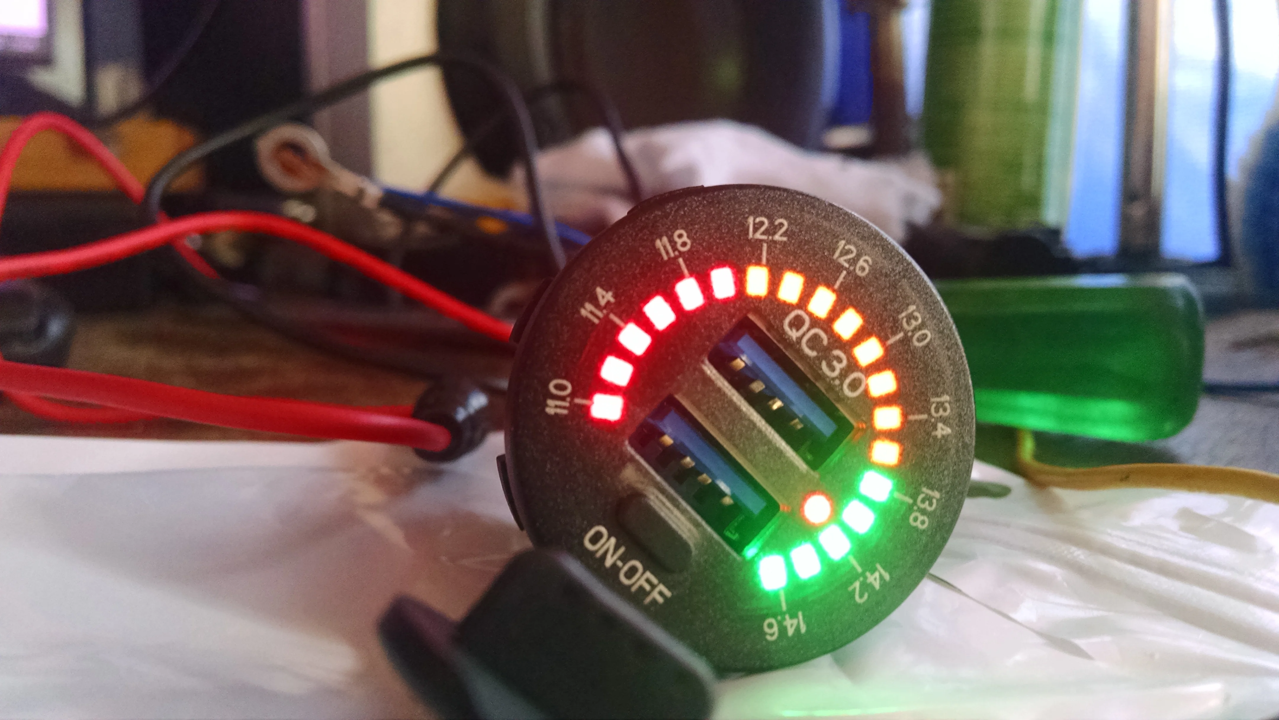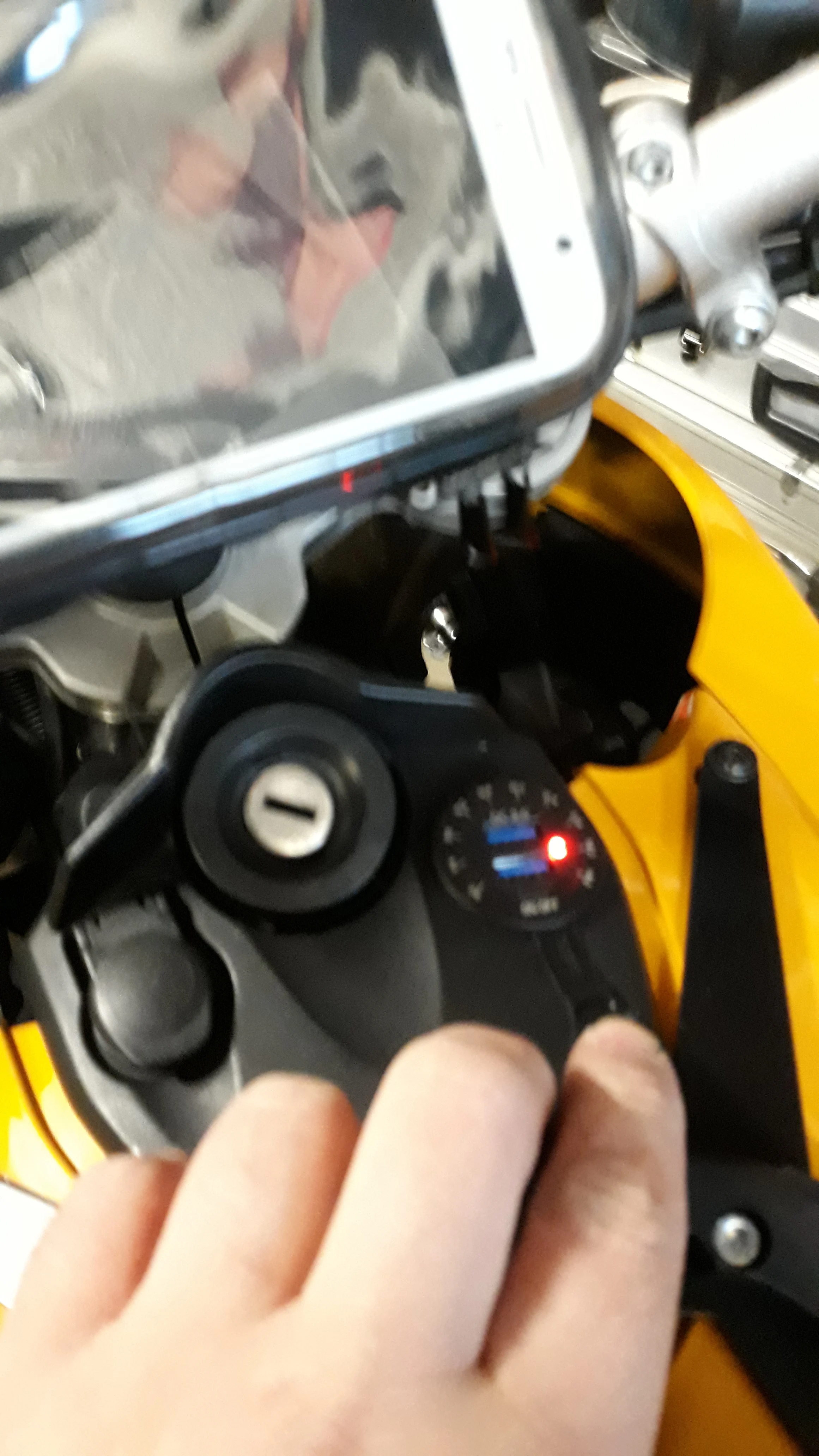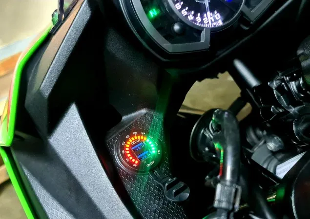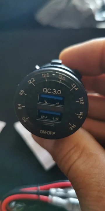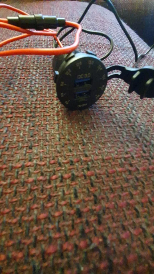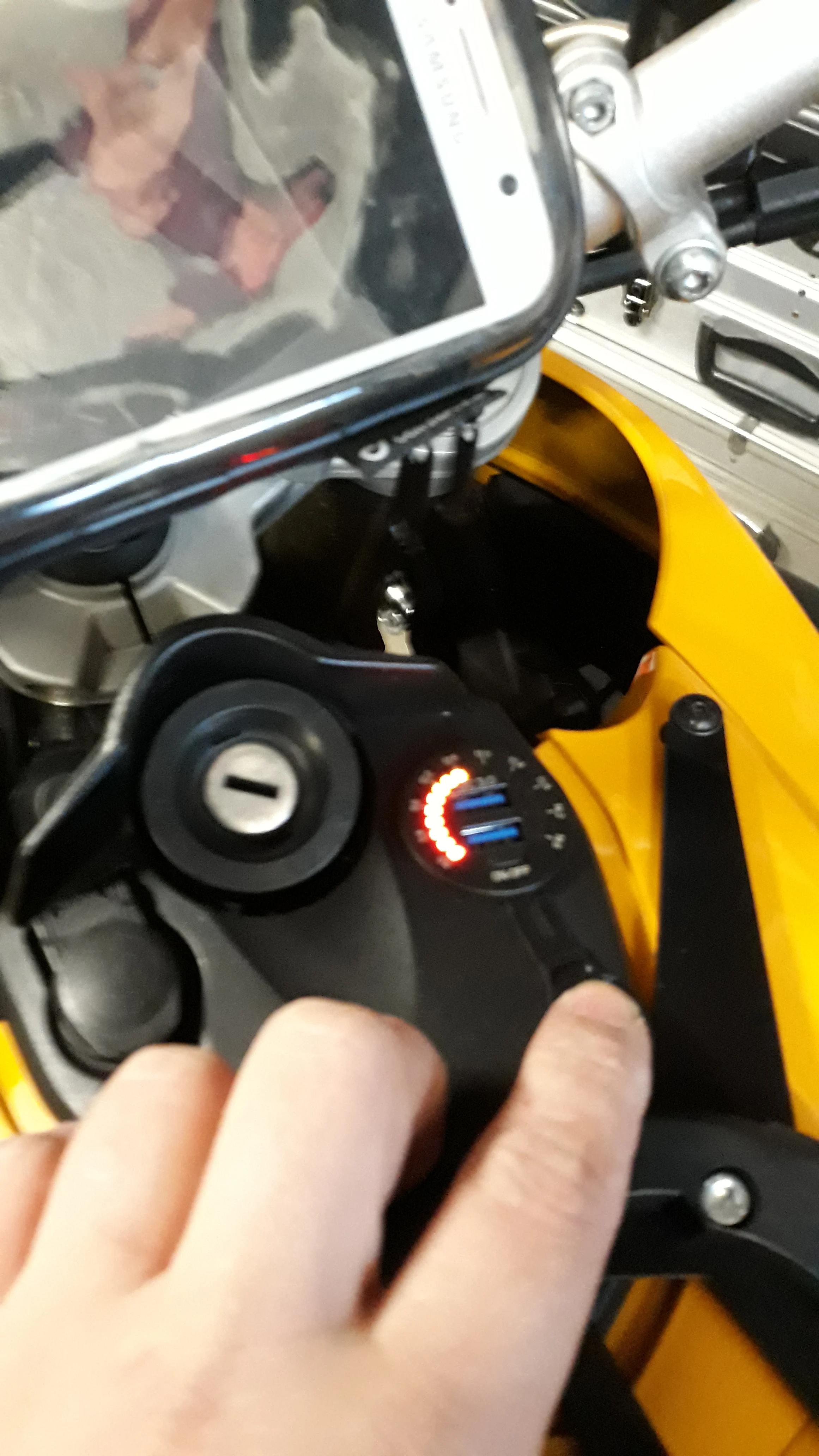 great usb socket. stays off when turning on motorcycle, one press of button shows current voltage, second press turns on usb sockets. usb 3.0 fast charge and usb c ports. 10/10