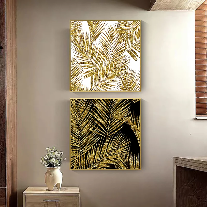 Скандинавский декор, холст с золотыми листьями, абстрактная живопис...