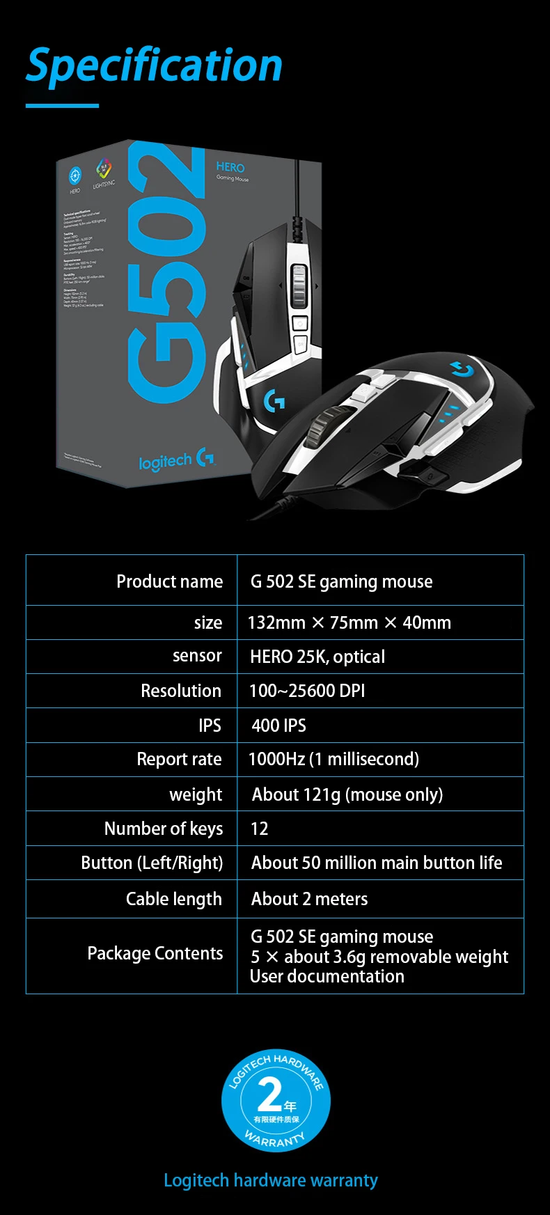 Мышь Logitech G502 HERO RGB профессиональная игровая, 16000DPI