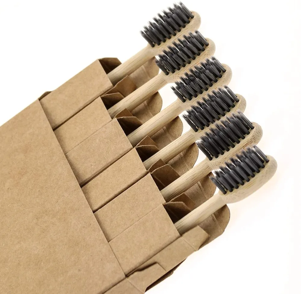 Бамбуковая зубная щетка, набор из 10 предметов для семьи-набор зубных щеток для взрослых зубная щетка из натурального бамбука, биоразлагаемая многоразовая Экологически чистая деревянная зубная щетка, мягкая щетинка из угля без бисфенола А.
