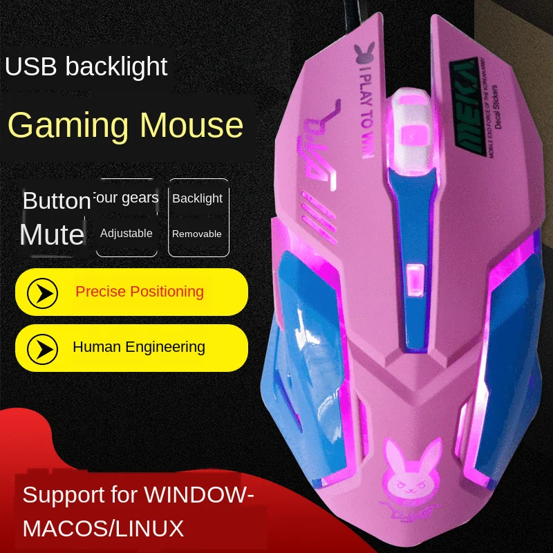 Розовая цветная светящаяся Бесшумная игровая мышь с курицей Проводная игровая мышь Usb, 2400 точекдюйм, быстрая игровая мышь для ПК, ноутбука