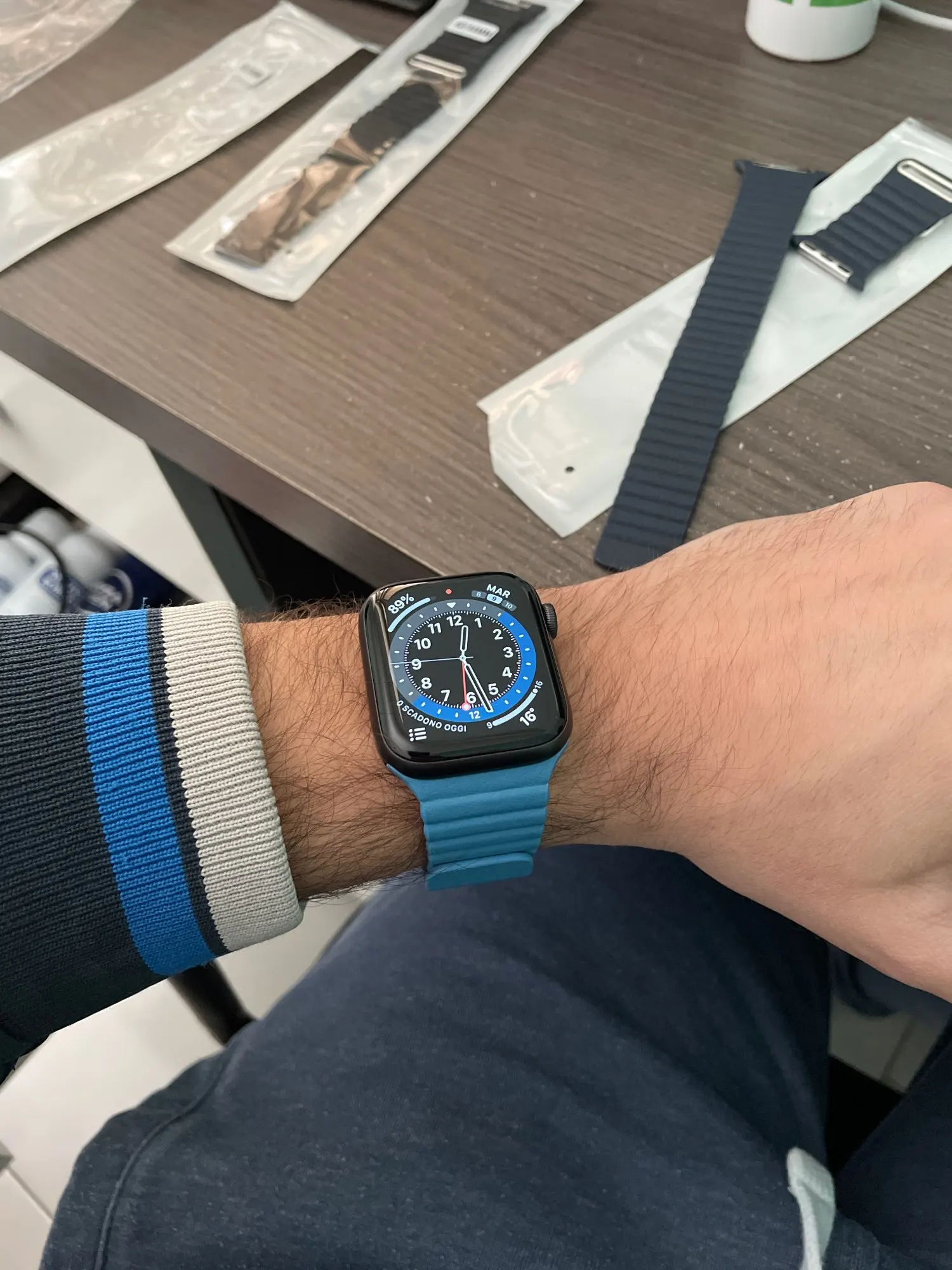 ремешок для Iwatch 6 подошёл идеально, сел как родной. Магнитный браслет держится жестко и крепко. Не расслабляется. Не спадает. Подошло в размер запястья. Заказывал 19.02.2021, в Нурлат посылка пришла 15.03.2021. Трэка не отслеживается. Продавцу огромное спасибо, магазин всем рекомендую!