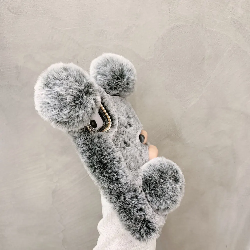 FeatureFashion 3D Panda Ear Cute Plush Fur Fluffy Cover Phone cases