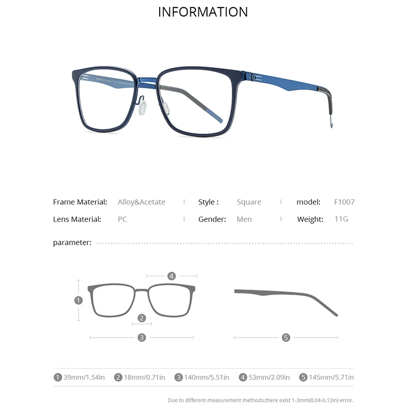 FONEX Мужские ультралегкие квадратные очки для коррекции зрения по ...