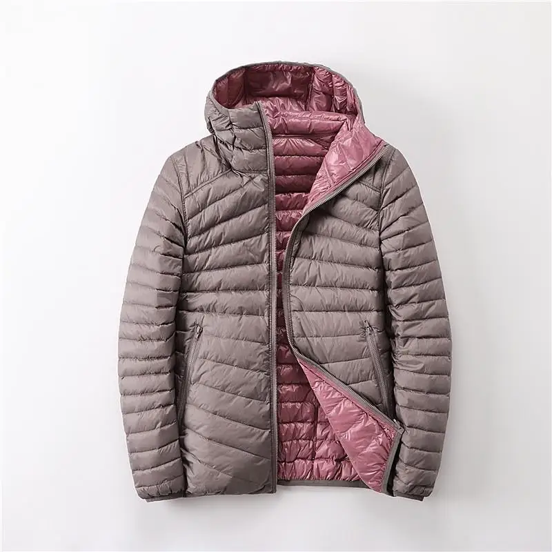 Женская двусторонняя куртка, теплое пальто на утином пуху, Осень-зима 2020, легкое тонкое облегающее пальто с обеих сторон