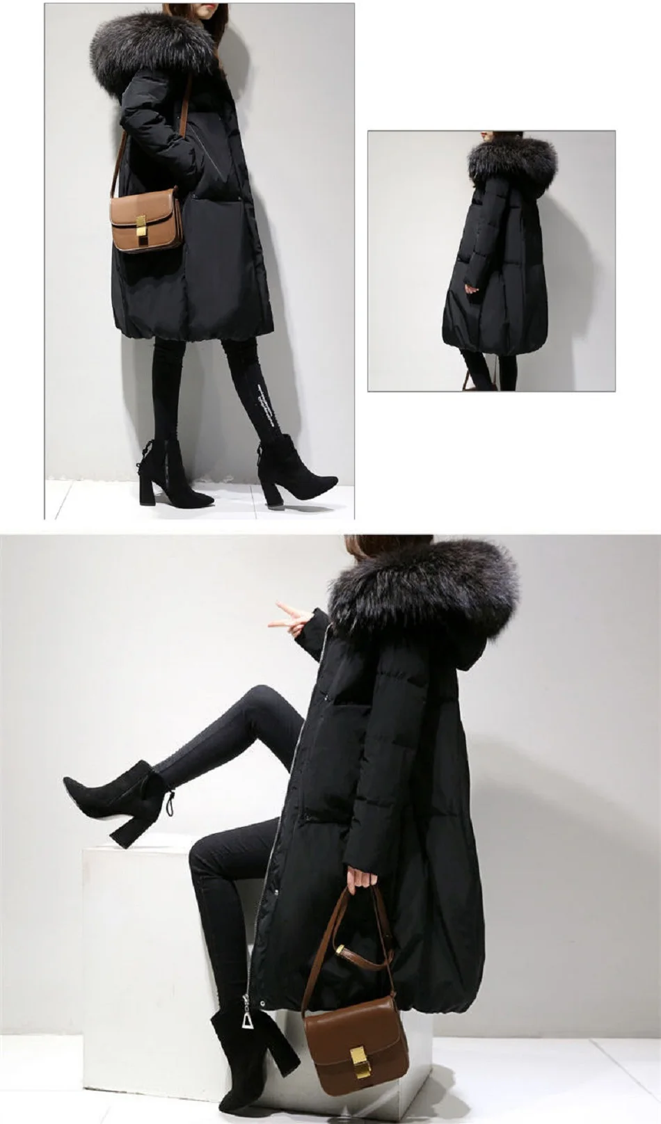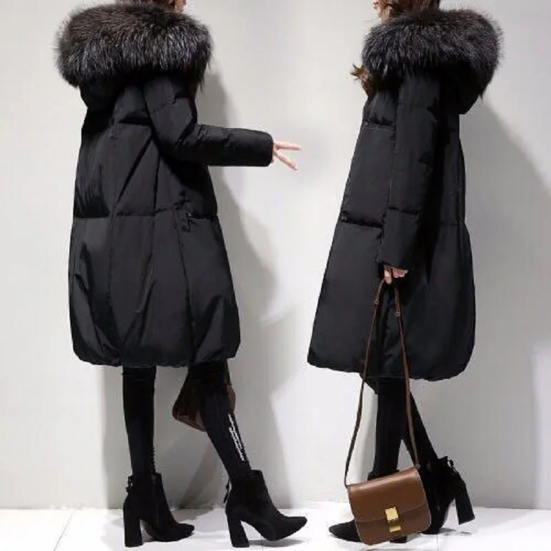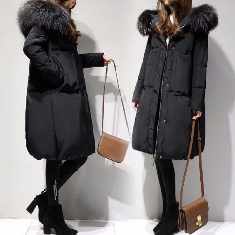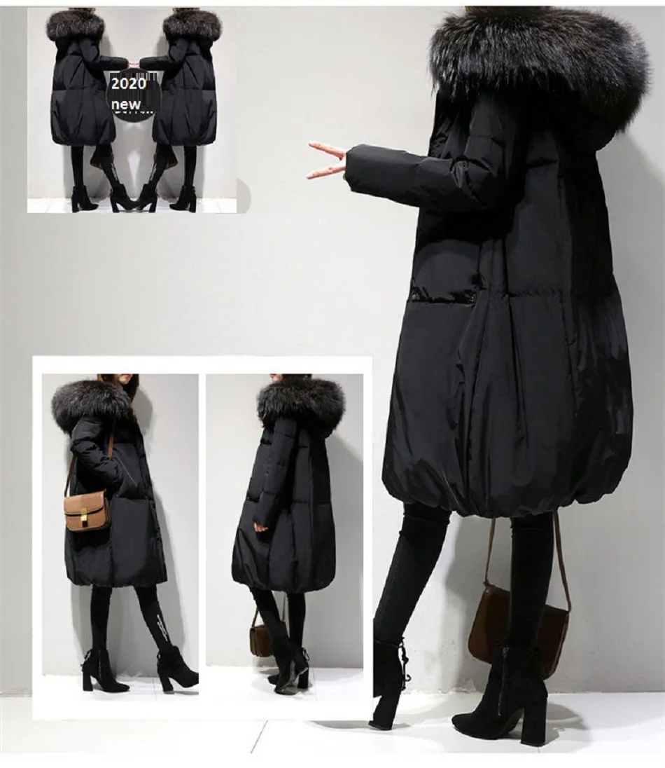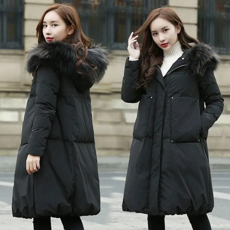 Женская хлопковая куртка, новинка зима 2020, пуховое хлопковое пальто средней длины, женские хлопковые куртки большого размера с большим меховым воротником
