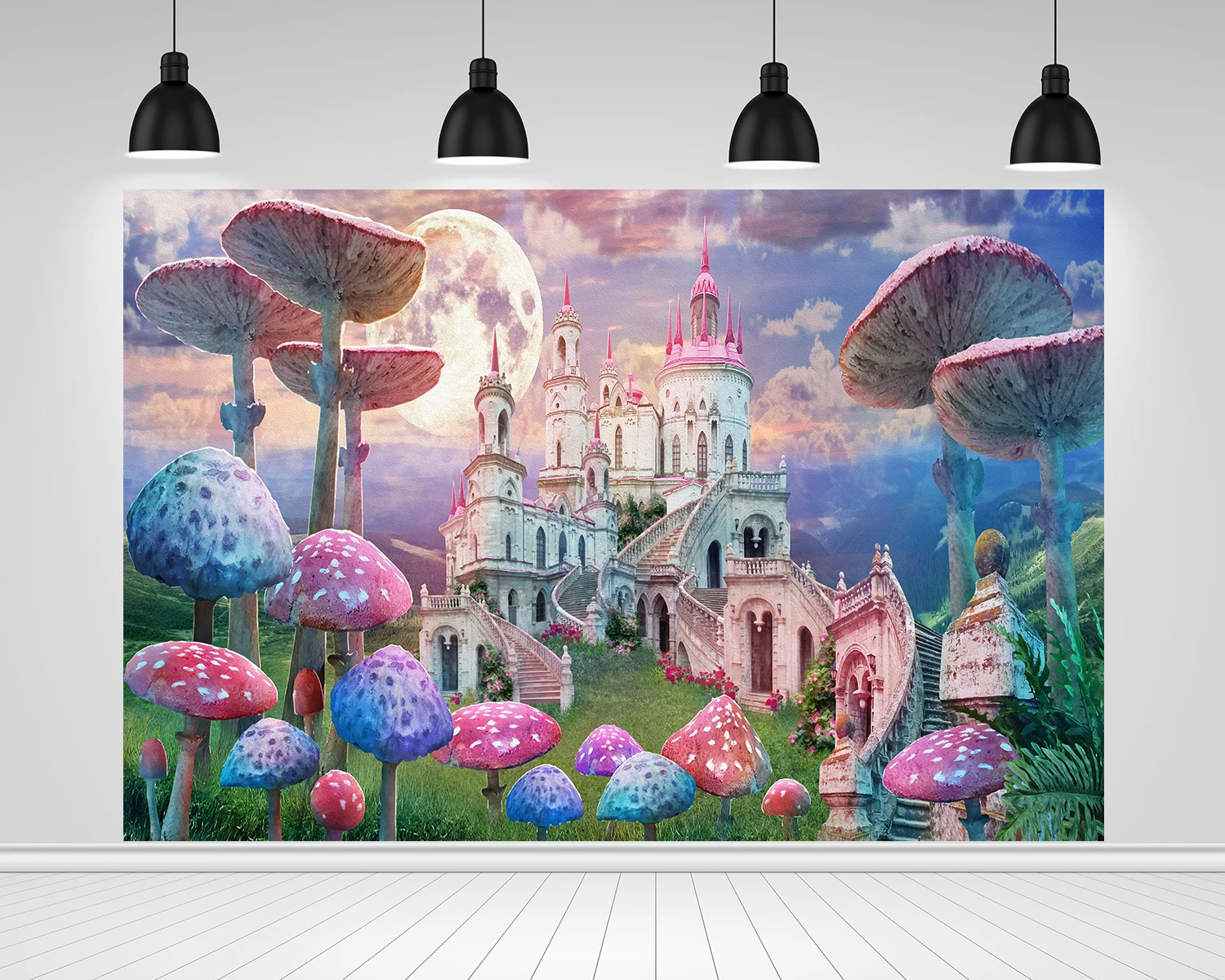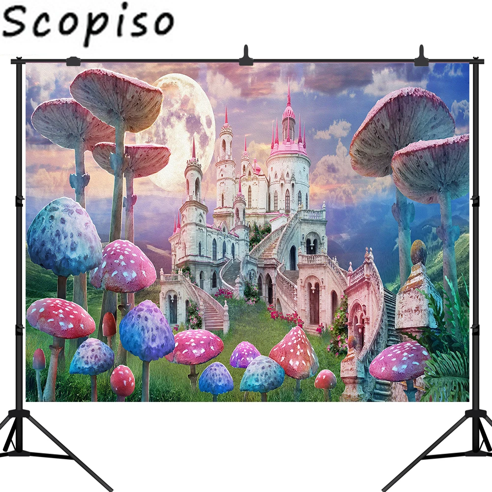 Scopiso фон для фотосъемки Алиса в стране чудес акварель замок грибы на день рождения вечерние фоны для детской фотостудии фон студия Prop