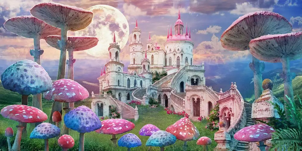 Scopiso фон для фотосъемки Алиса в стране чудес вечерние грибы десе...