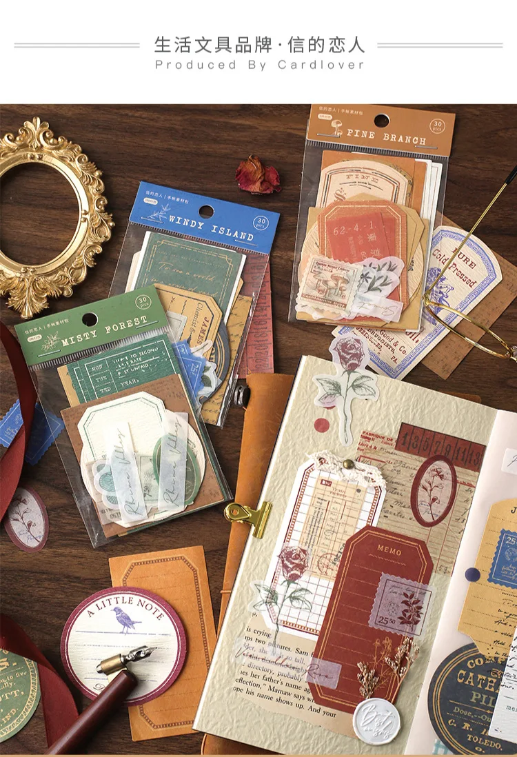 Стикеры в стиле ретро 30 шт.упак., винтажные декоративные наклейки сделай сам для скрапбукинга, дневника, альбома
