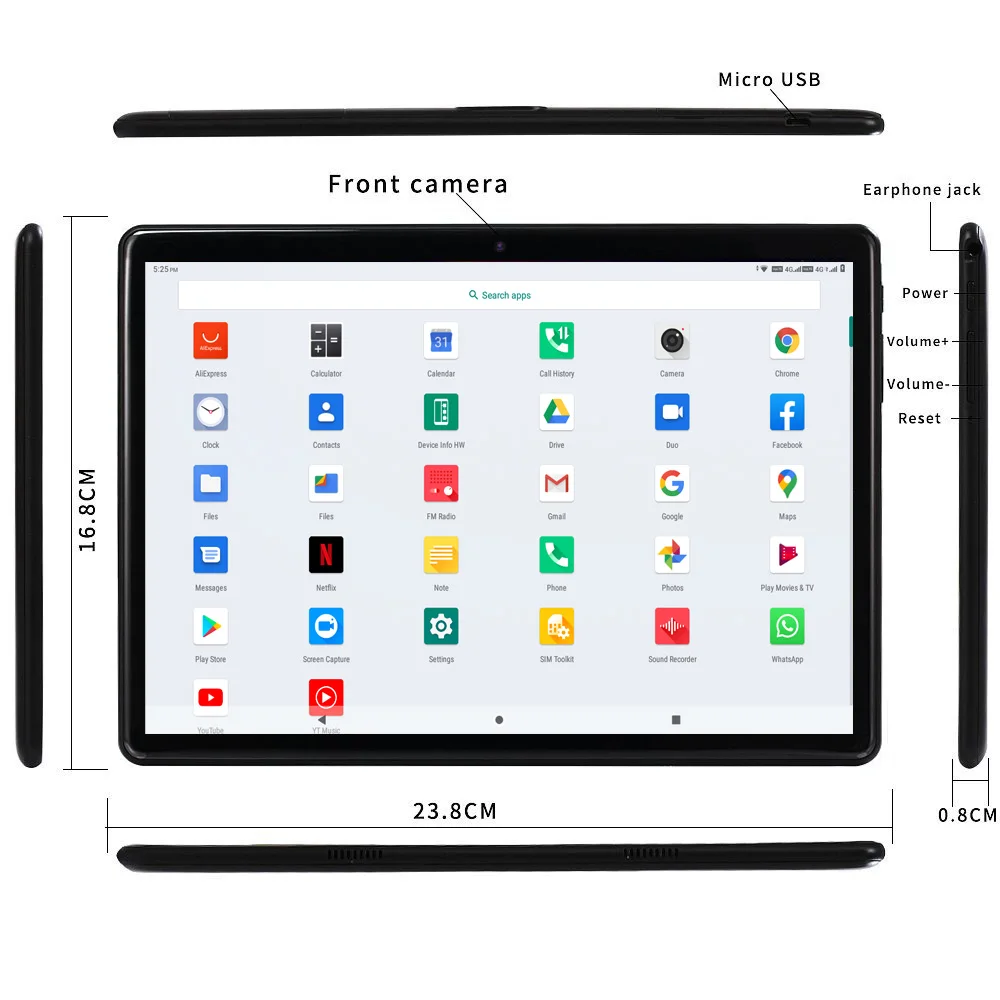 Новый 4G Телефонный звонок 10,1 inch Tablet PC Octa Core 2.5D Сталь Экран Android 9,0 Планшеты 4 Гб-64 Гб Встроенная память Bluetooth 4,0 Wi-Fi Планшеты