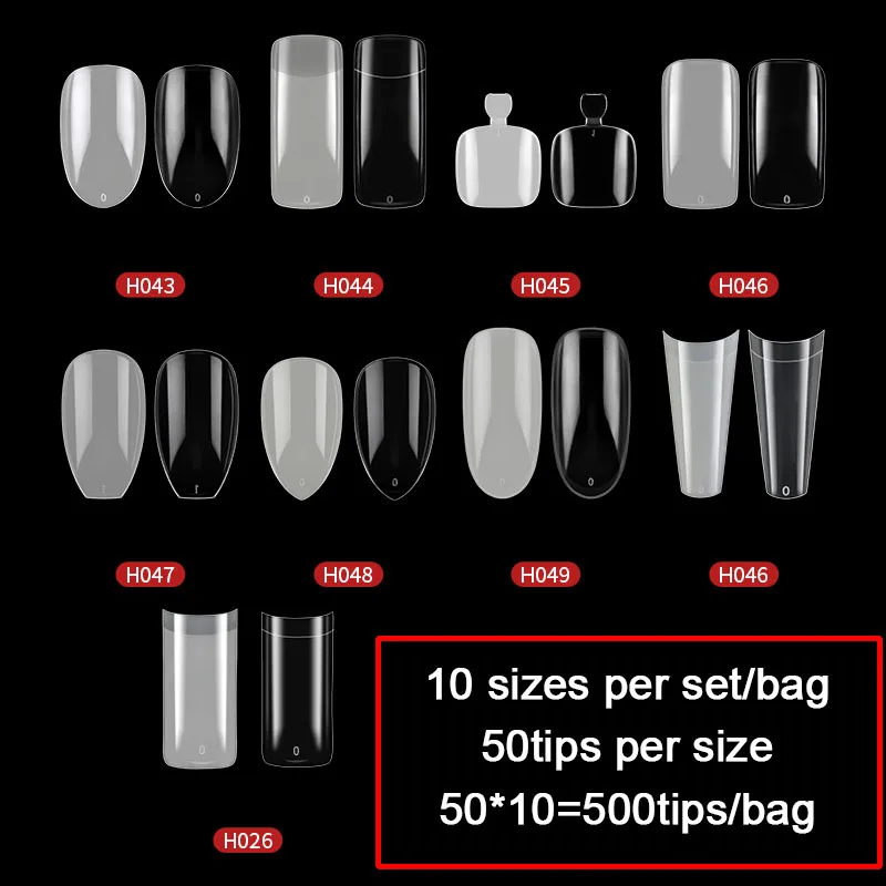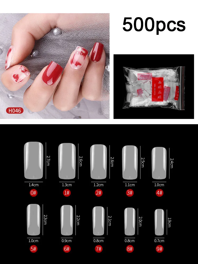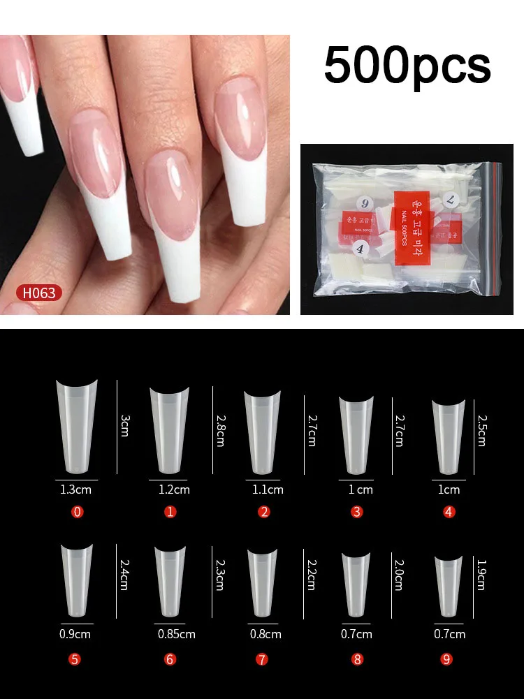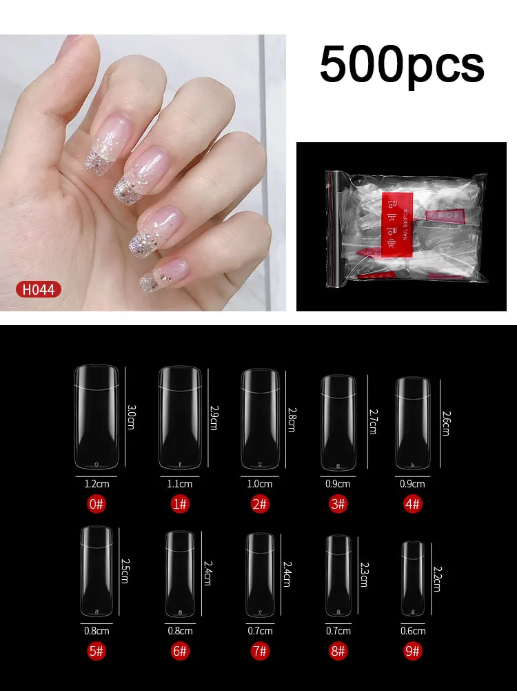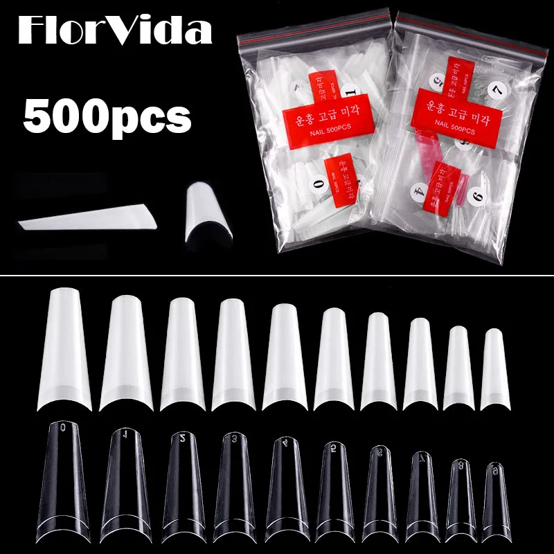 Набор накладных ногтей FlorVida, 500 накладных ногтей в мешках, полная половина, Французский акриловый АБС-пластик, для маникюра, пальцев ног, 10 размеров