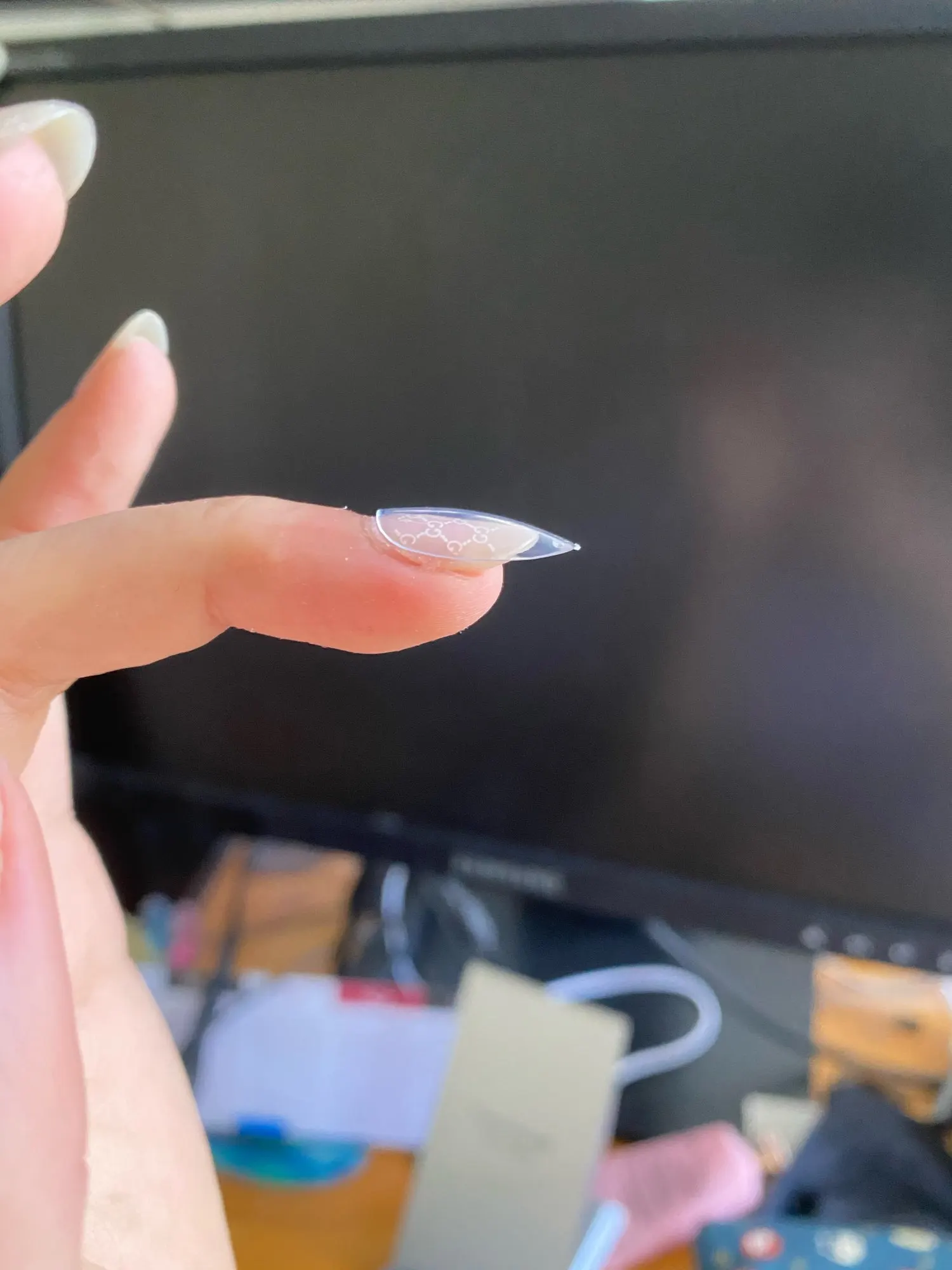 Buenas uñas postizas, llegaron en buen estado y con un regalito. Las uñas se adaptan a la uña natural, son delgadas en la zona de cutícula y rígidas en la zona de la punta. Eso sí, el número 9, que es el más pequeño, me quedo grande para mi uña del meñique, pero se puede limar para adaptar el tamaño a la uña natural. Recomiendo al vendedor totalmente