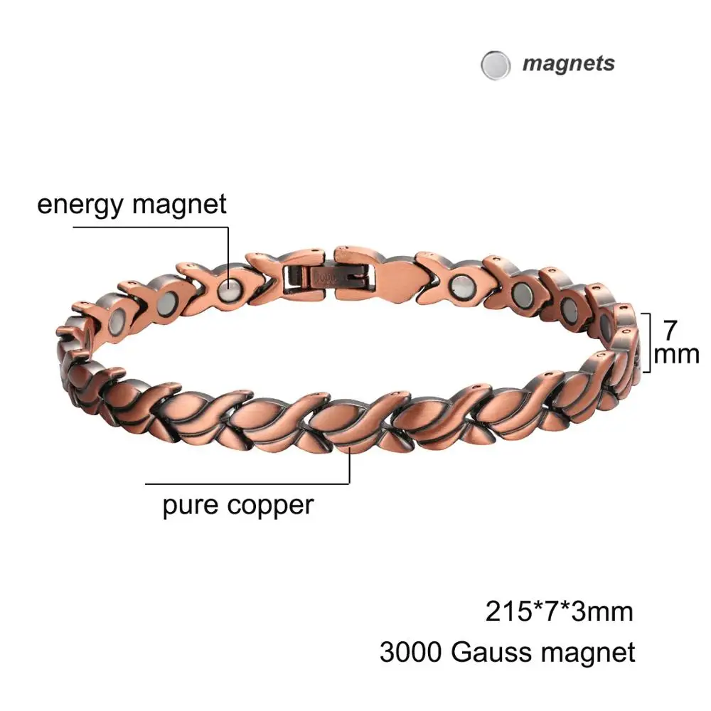 Магнитный браслет из чистой меди для женщин, браслеты на запястье с биоэнергией, излечивающий магнитный браслет с кровяным давлением, женская бижутерия, оптовая продажа
