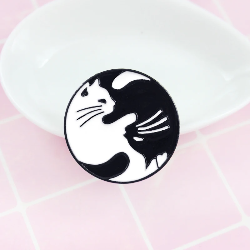 Модная простая черно-белая круглая брошь с эмалью в официальном офи...