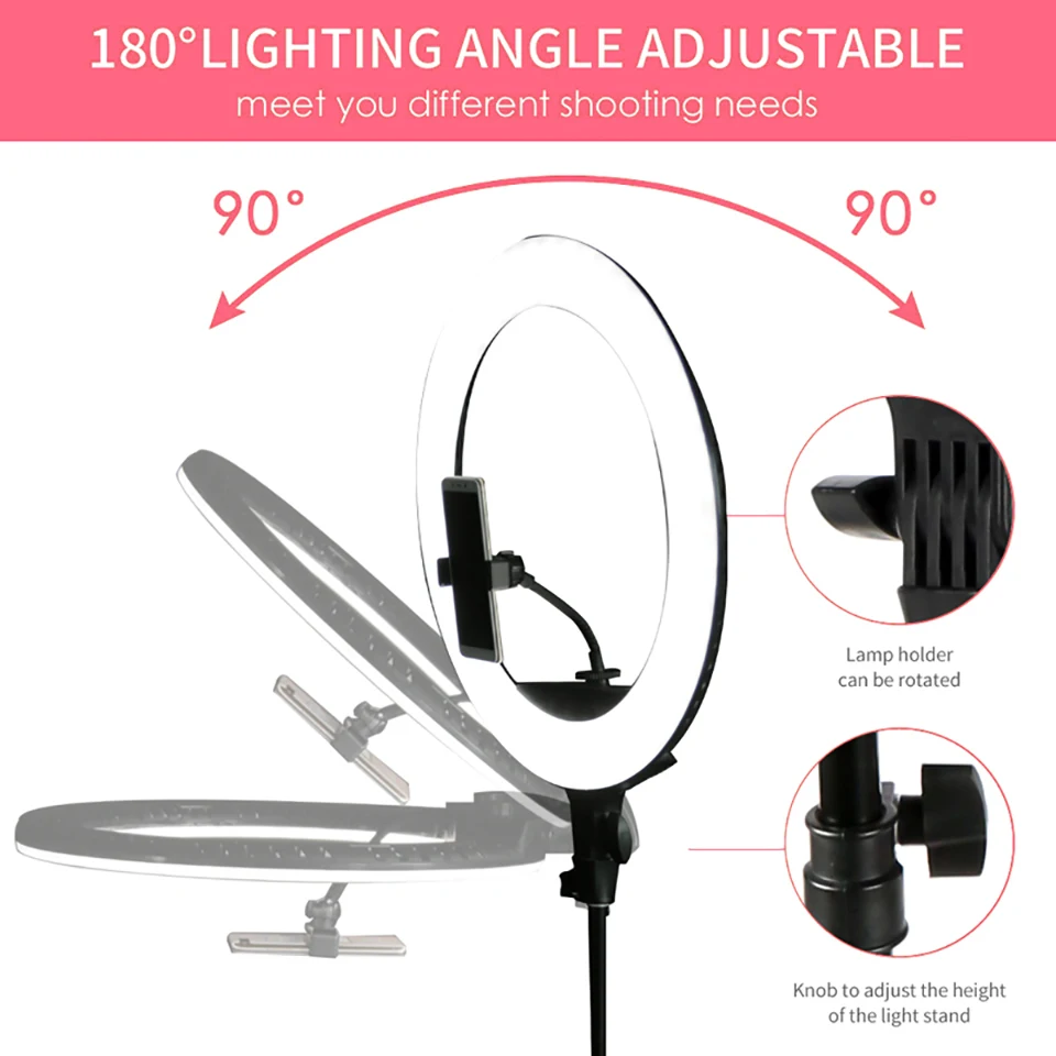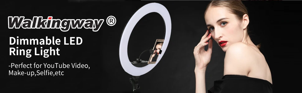 Кольцевой светодиодный светильник WalkingWay, 18 дюймов, со штативом, с регулируемой яркостью, для студийной видеоссветильник емки, для tik tok, макияжа, Youtube