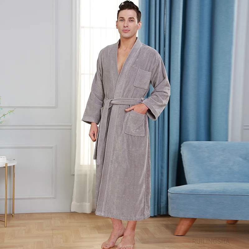 Халат-кимоно мужскойженский из 100% хлопка, длинный плотный впитыва...