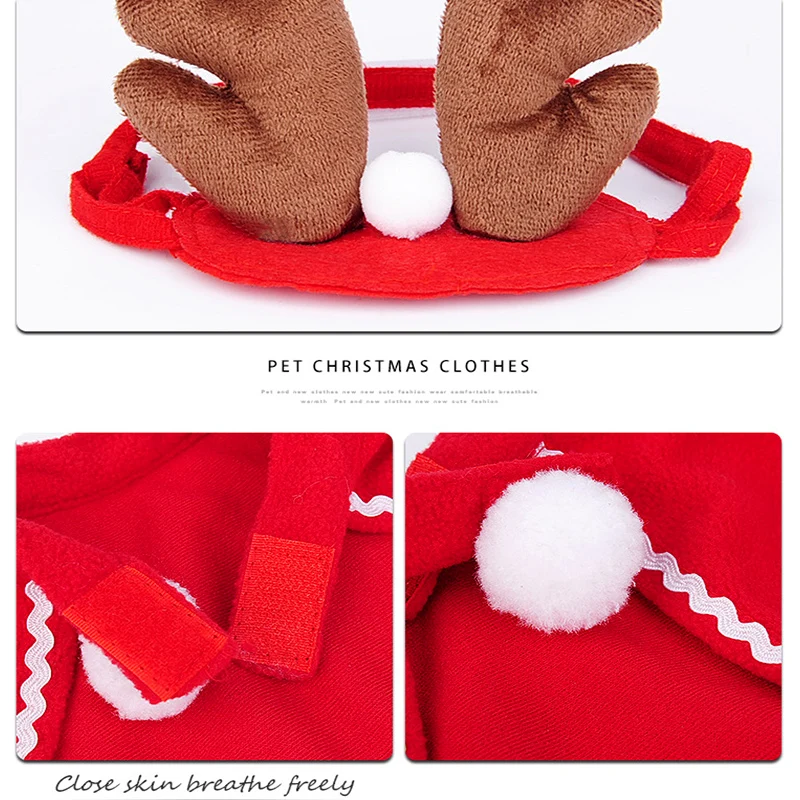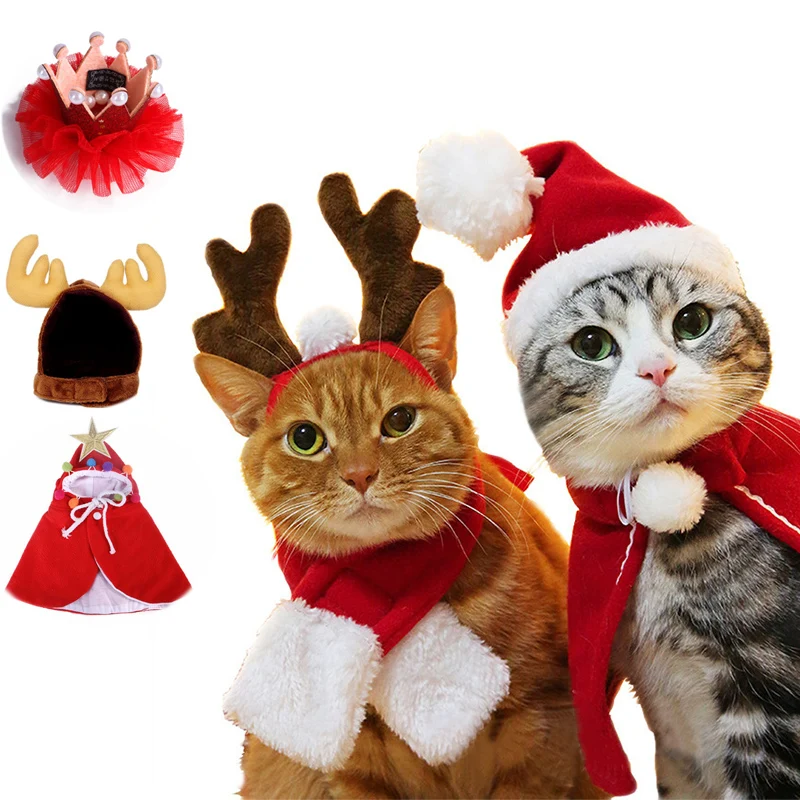 Рождественский костюм для кошек и собак, костюм Санты, одежда для маленьких котят и щенков, шапка, головной плащ с оленем, аксессуары для домашних животных