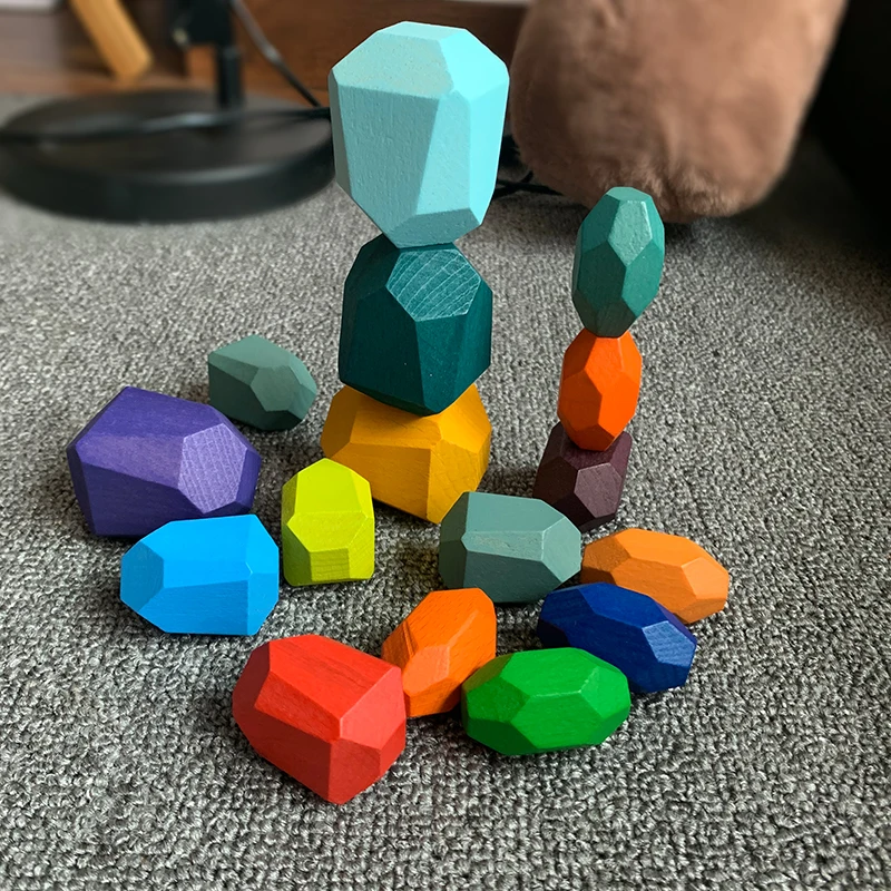 JaheerToy цветные камни для укладки, деревянные блоки, Радужный камень, Детские деревянные игрушки, обучающая игрушка