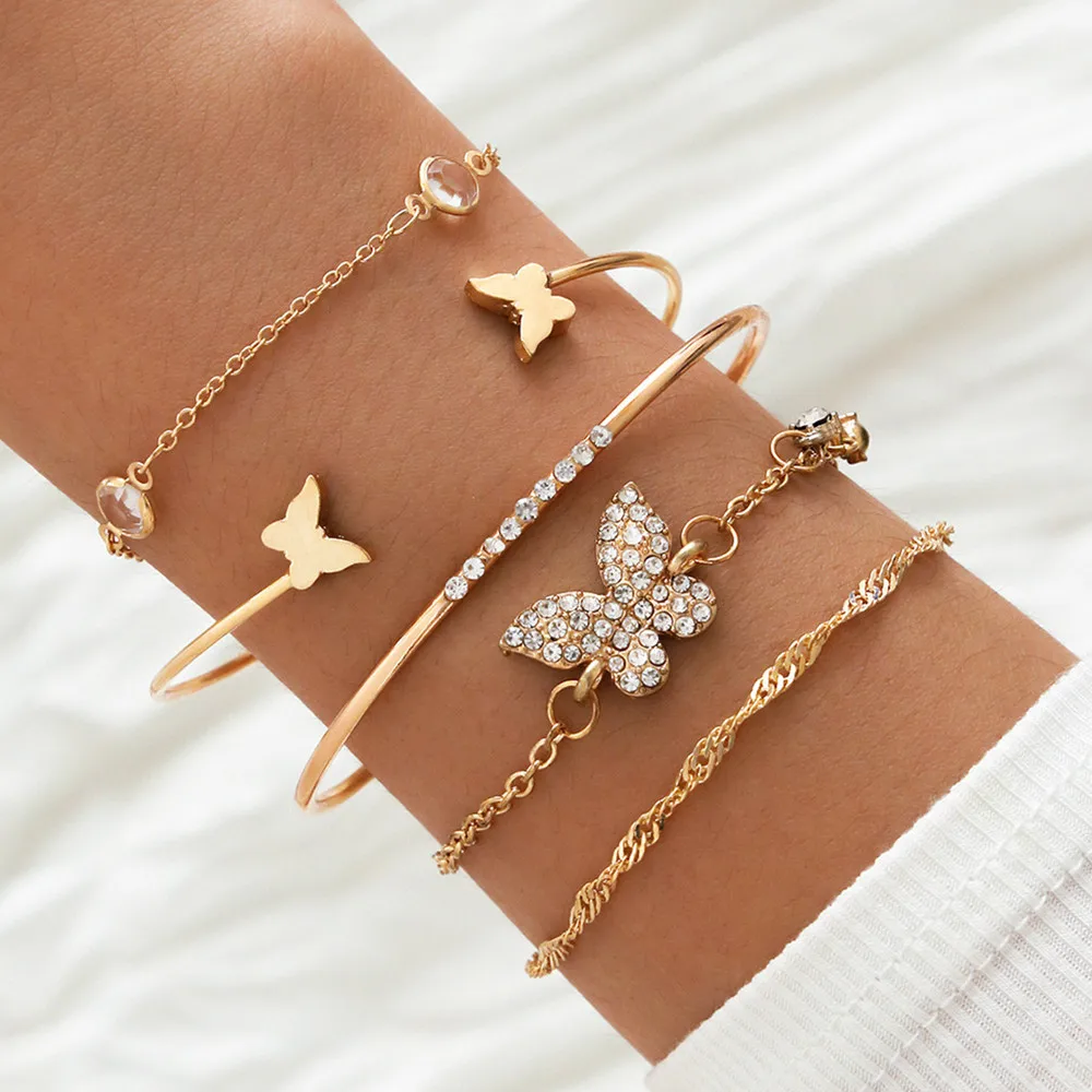 Богемный Элегантный Браслет-манжета DIEZI, стразы, браслеты с бабочками, Женский комплект браслетов-цепочек золотого цвета, Винтажные Украшения в стиле бохо