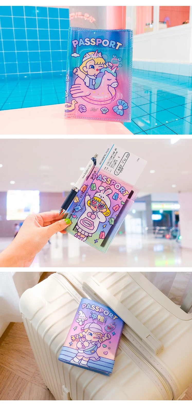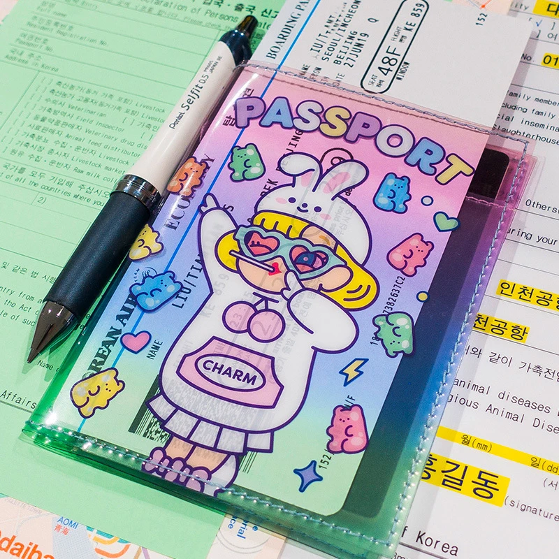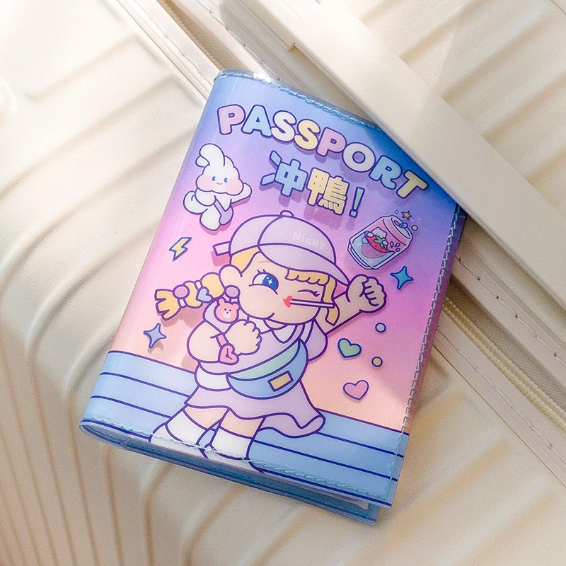 Прозрачная Обложка для паспорта из ПВХ с мультяшным рисунком, симпатичная Обложка для паспорта для девочек, зажим для билета, ID Bank держатель для карт