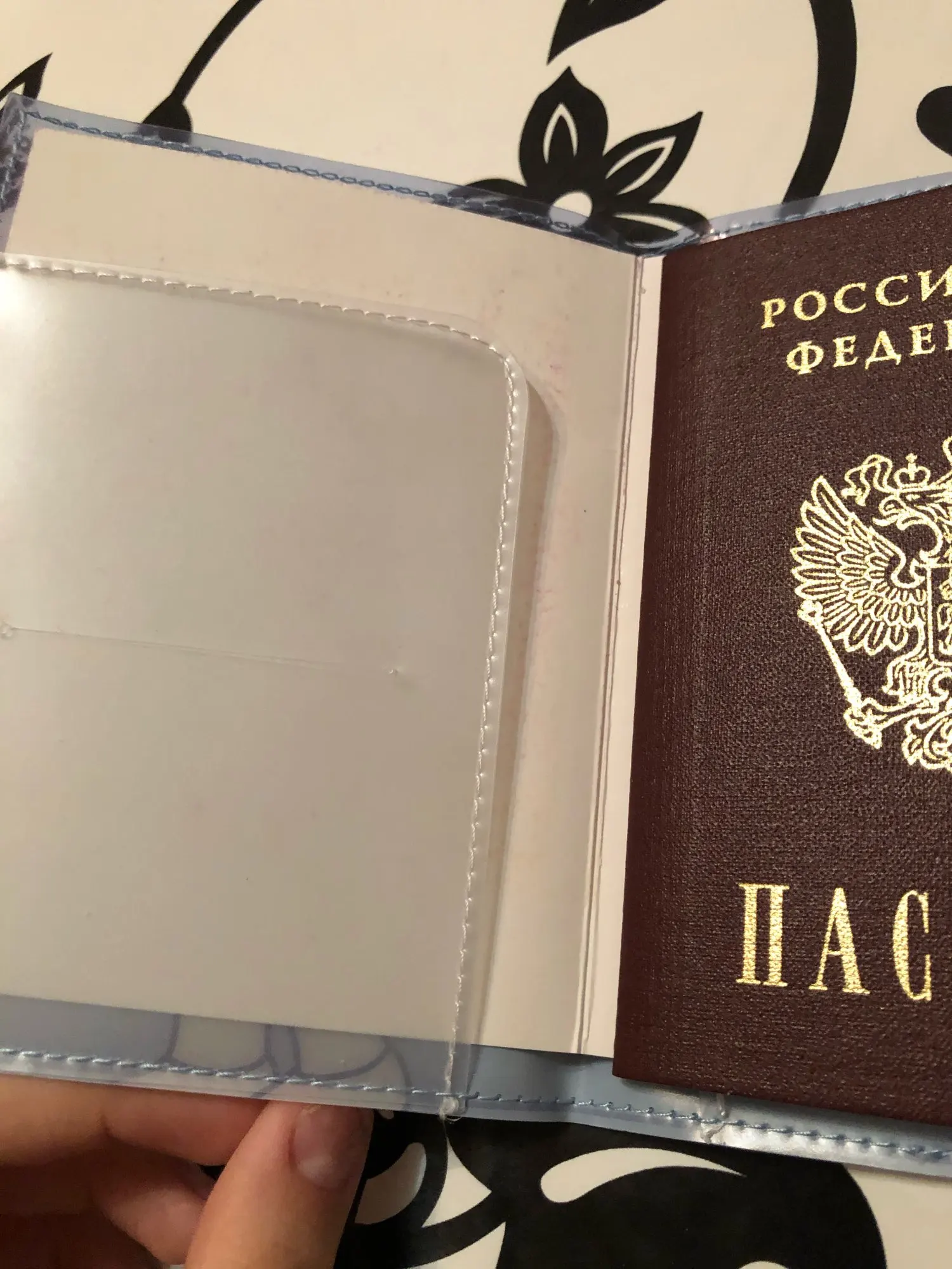 пришел очень быстро немного больше российского паспорта, но я так и хотела можно положить снилс и полис есть дополнительный кармашек 10/10