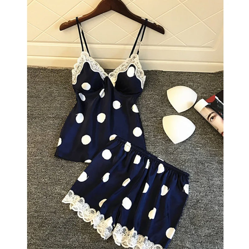 Пижама женская, атласная, кружевная, с глубоким V-образным вырезом