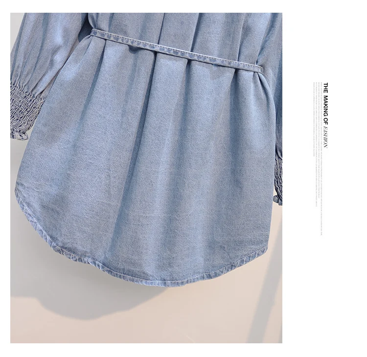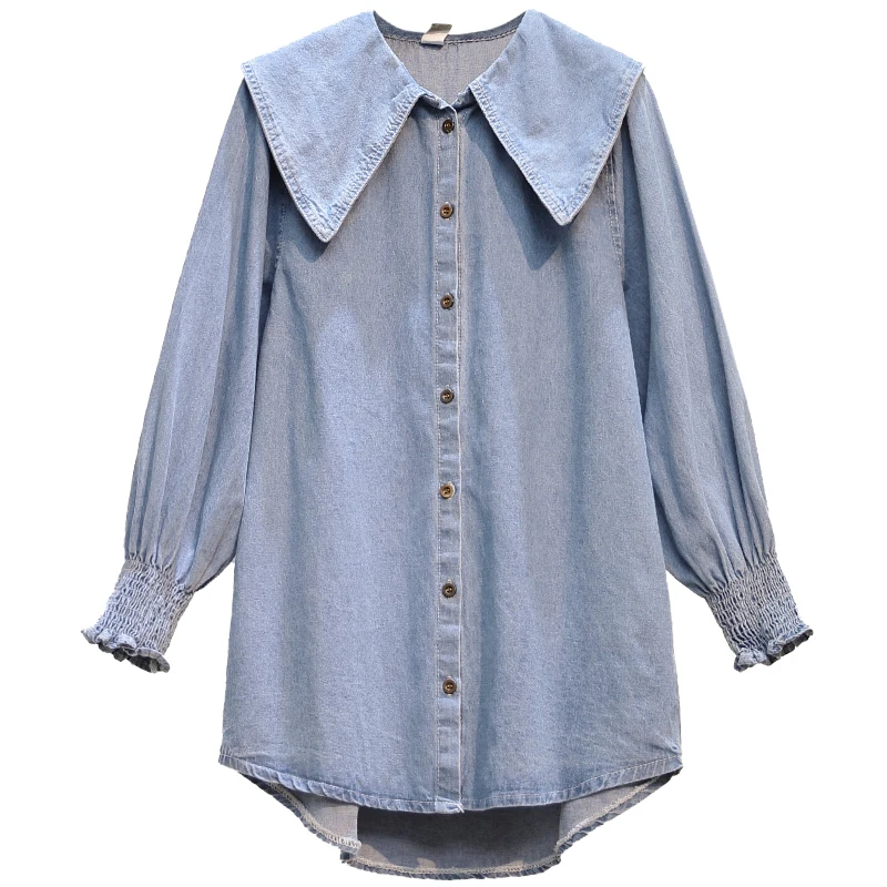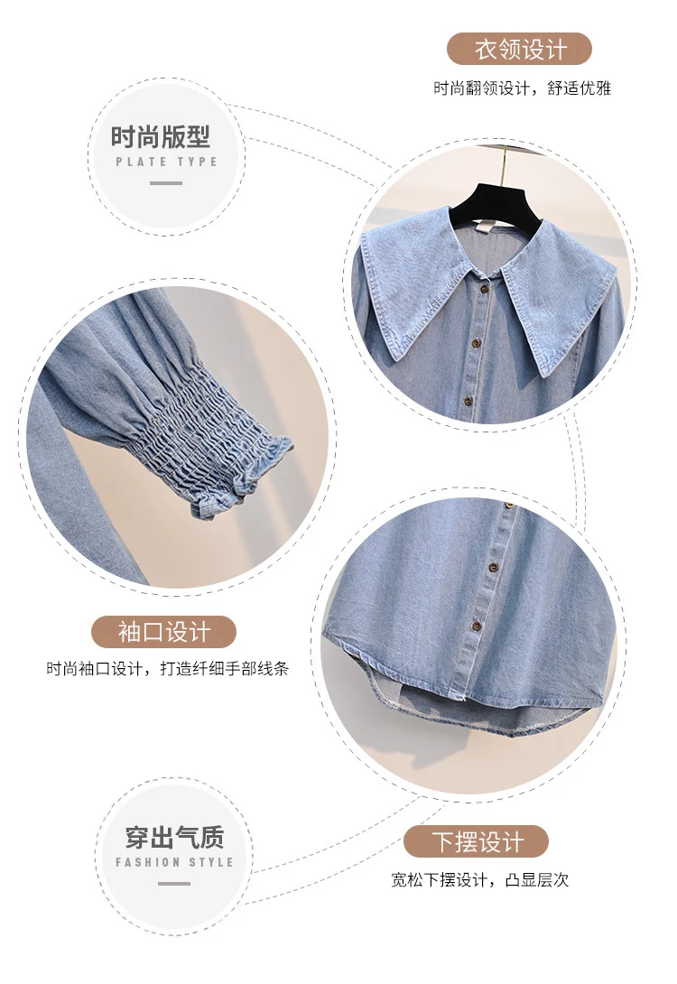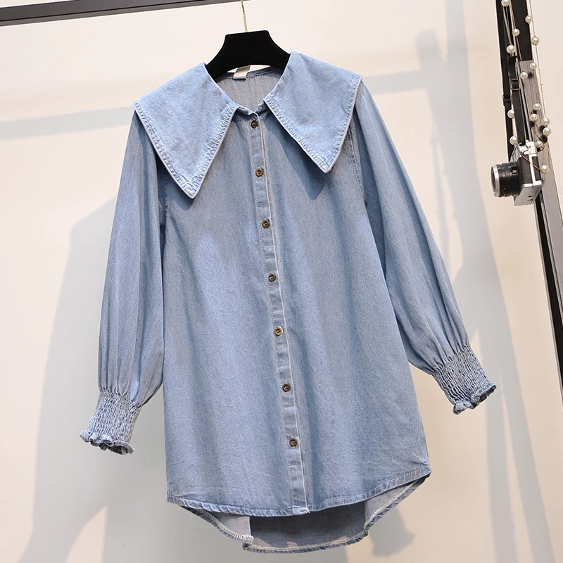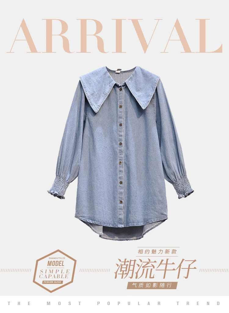 Женская Джинсовая блузка, винтажный Топ с длинным рукавом, модная одежда, рубашки для женщин на весну и осень, A6251, 2021