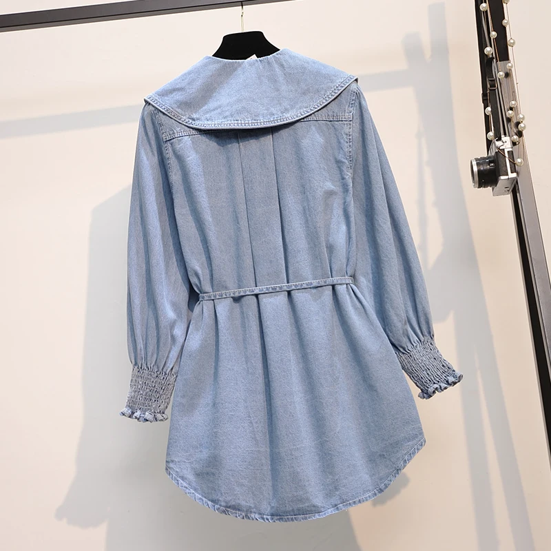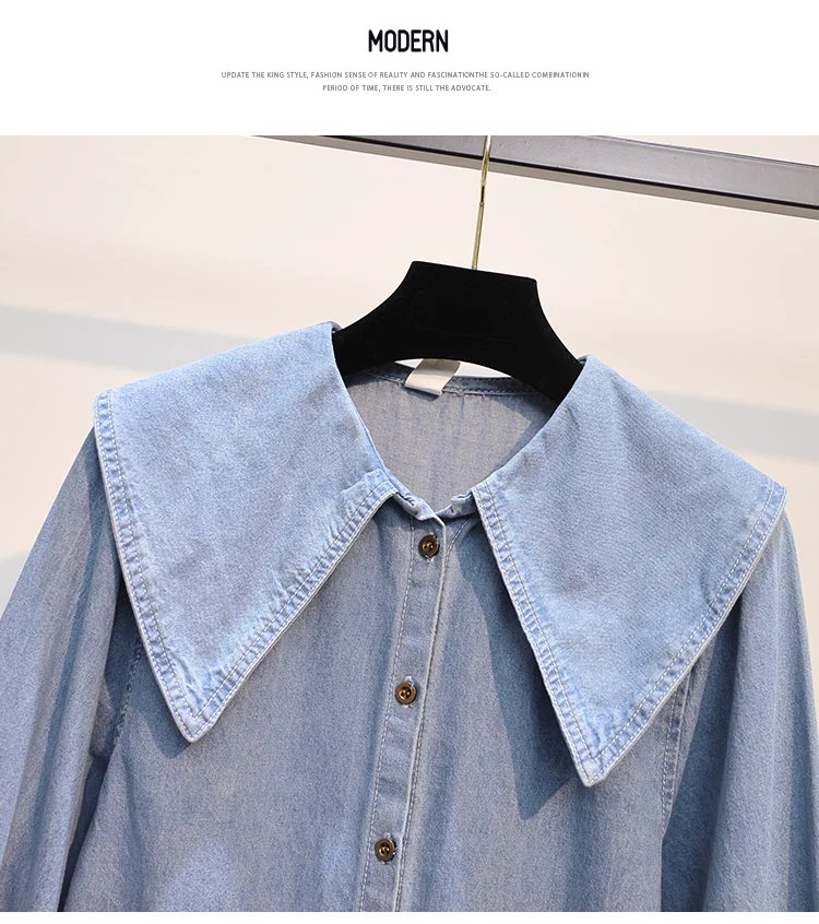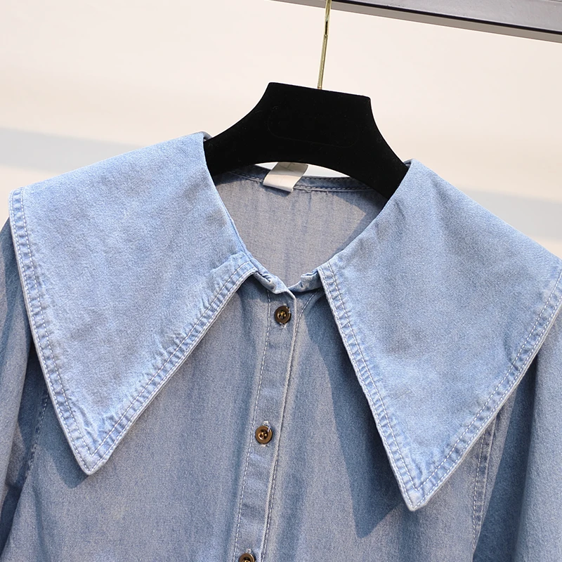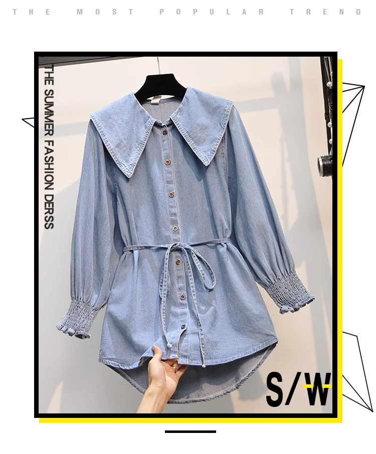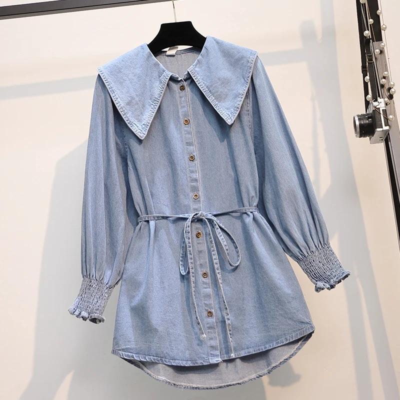 Женская Джинсовая блузка, винтажный Топ с длинным рукавом, модная одежда, рубашки для женщин на весну и осень, A6251, 2021