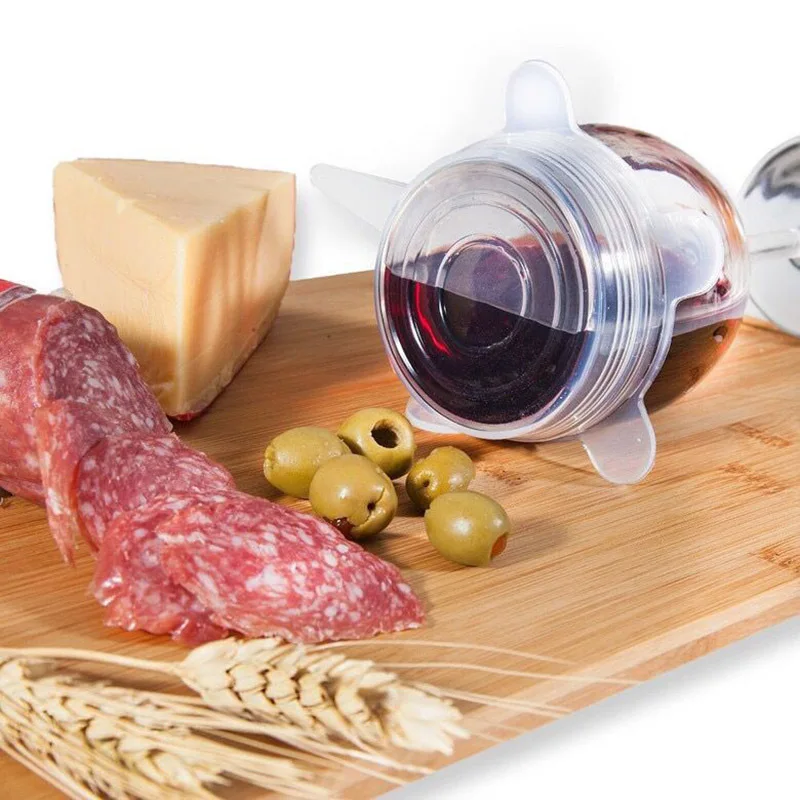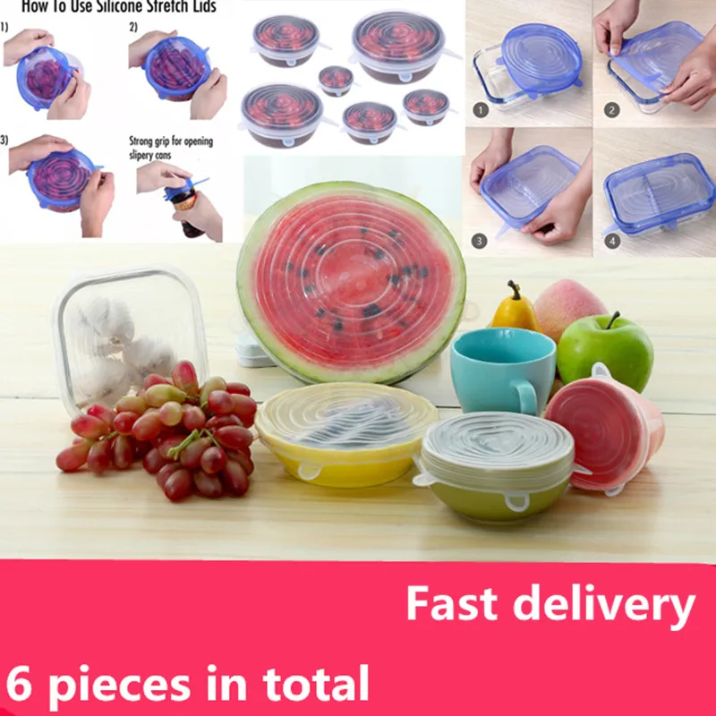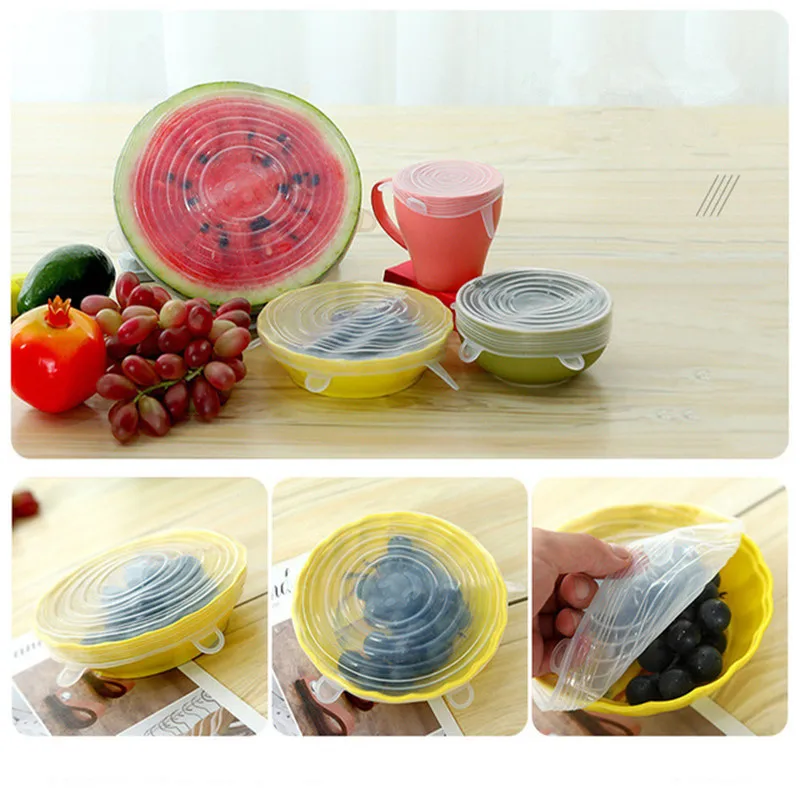 Силиконовые крышки для пищевых продуктов, 6 шт., многоразовые, растягивающиеся, герметичные, сохраняющие свежесть крышки, герметизация, кухонная посуда