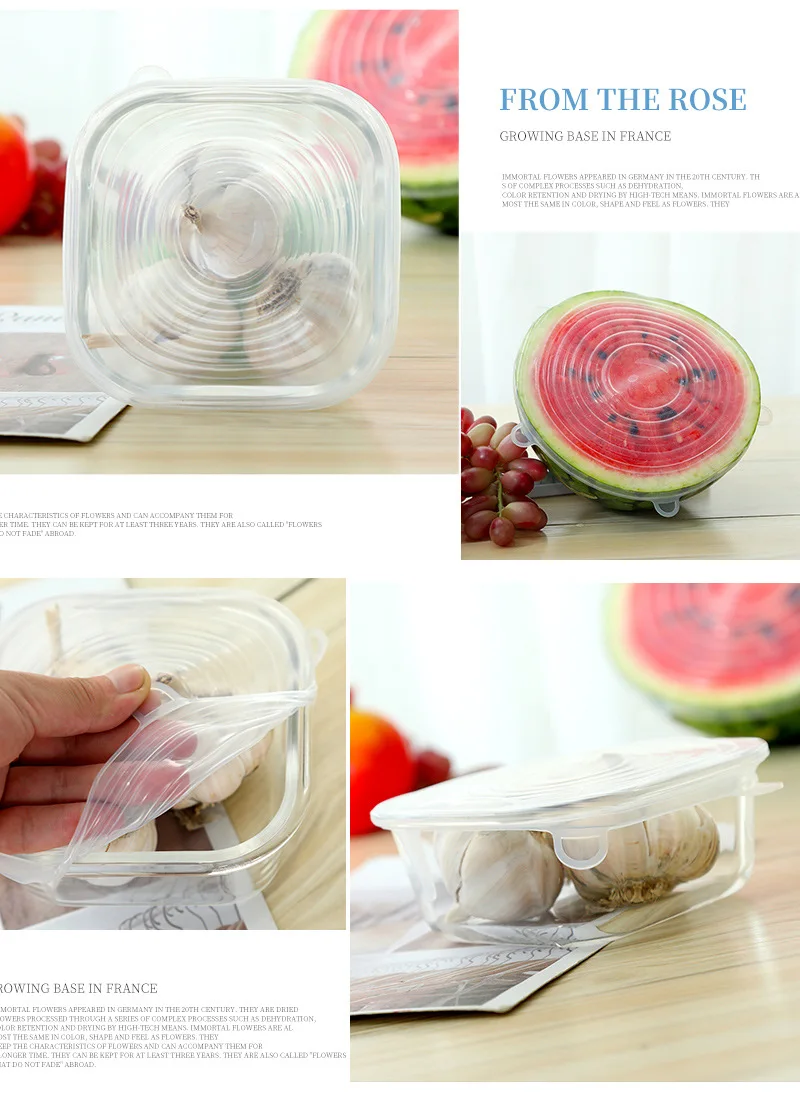 Название продукта: 6 шт./компл. упаковки пищевых продуктовМатериал: силиконОсобенности: охрана окружающей средыКоличество: 6 шт./компл.Тип: бытовойФункция: Растяжка, многоразоваяИспользуется для: сохранения пищи