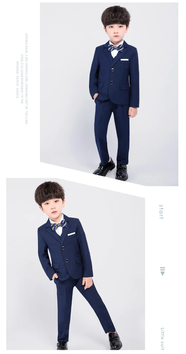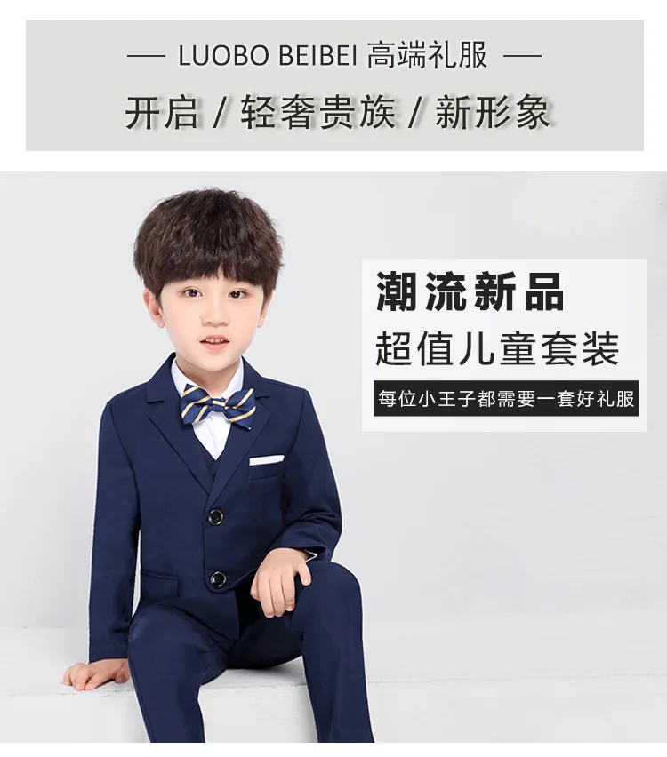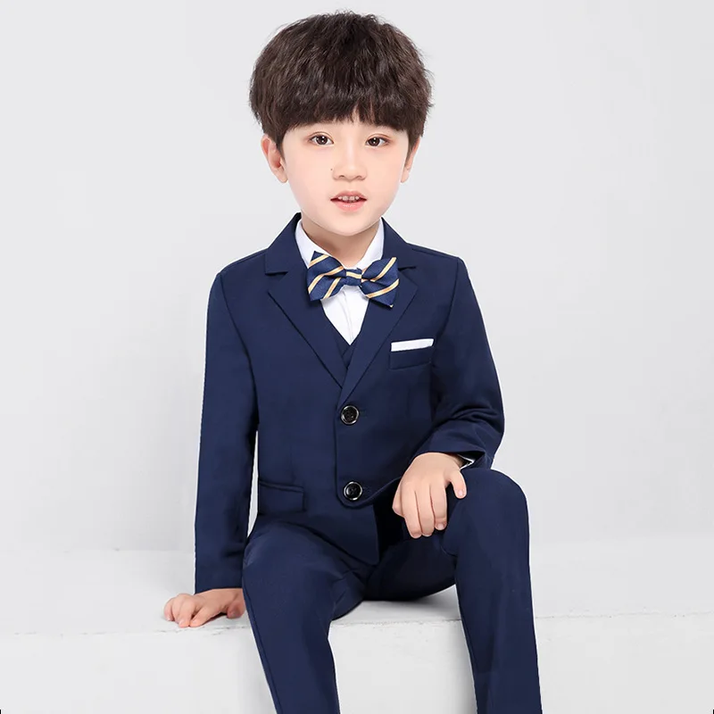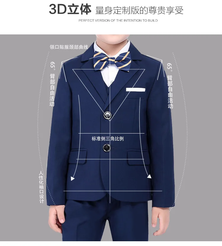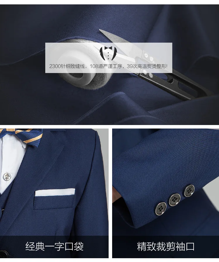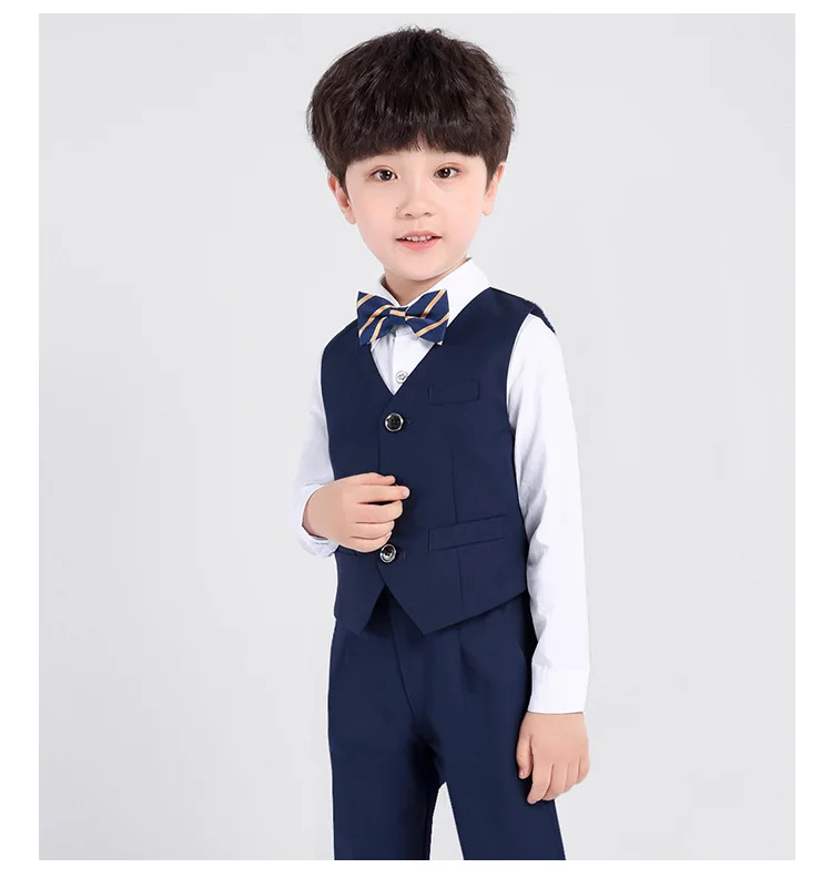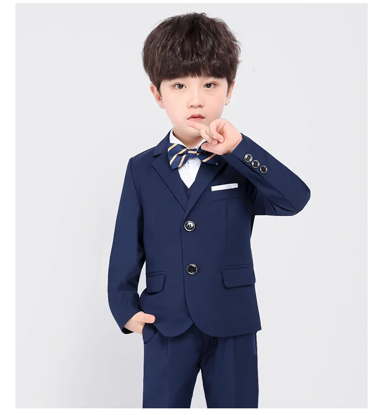 Осенне-зимний детский костюм для свадьбы, новые модные детские платья для мальчиков синий блейзер для маленьких мальчиков, жилет, комплекты одежды От 2 до 12 лет