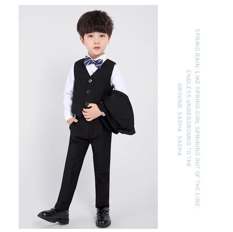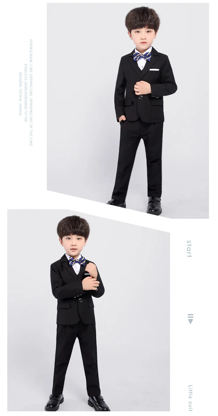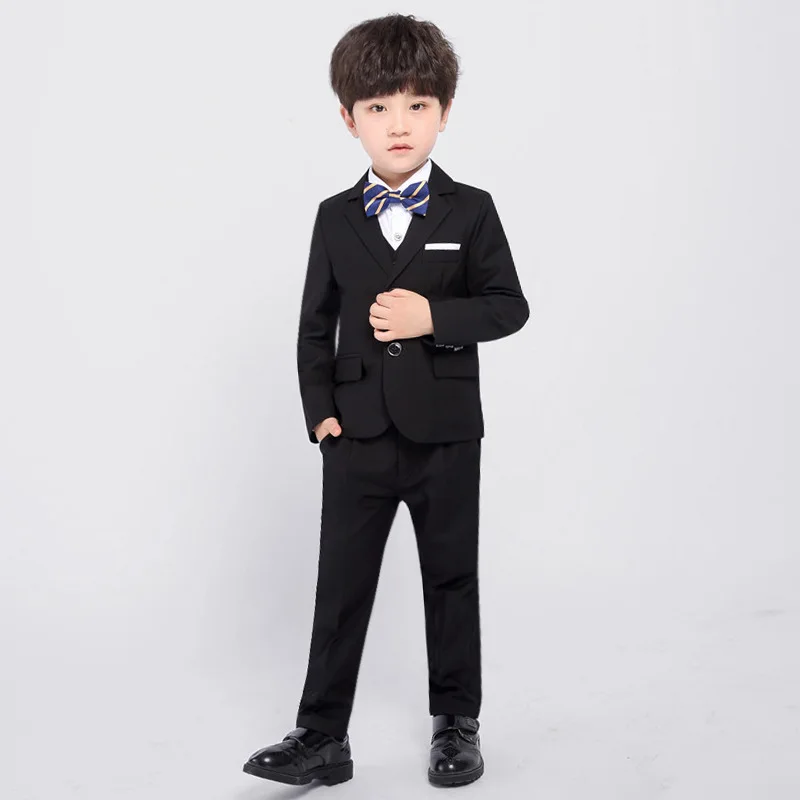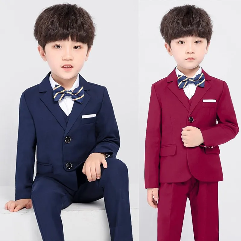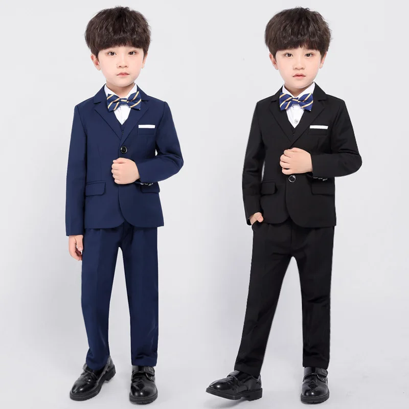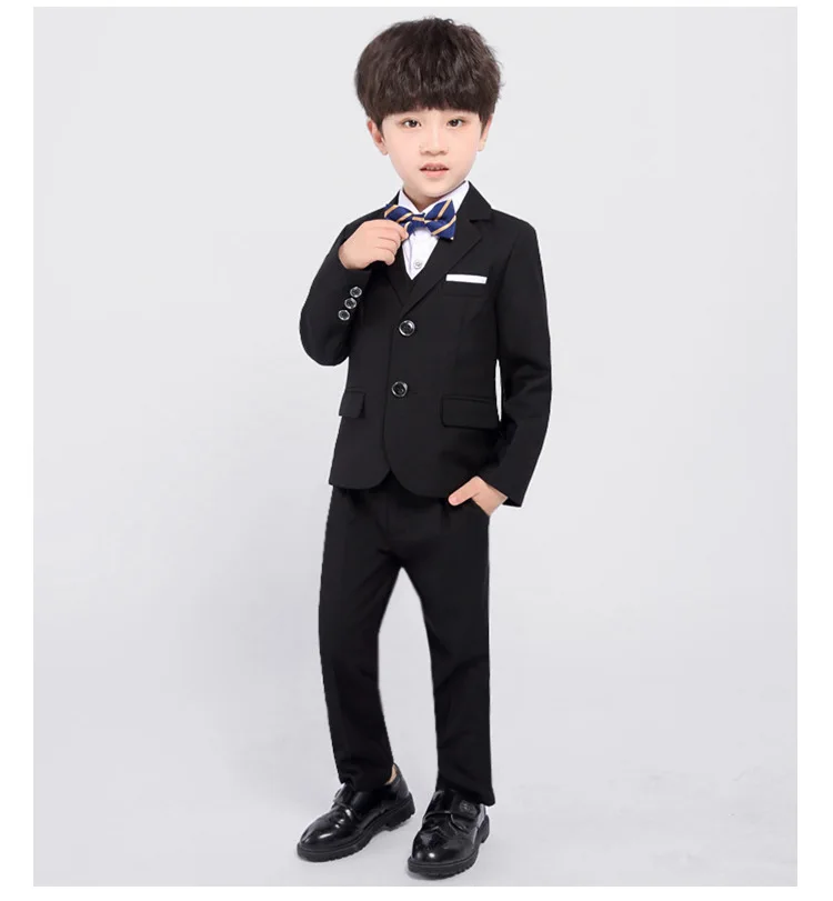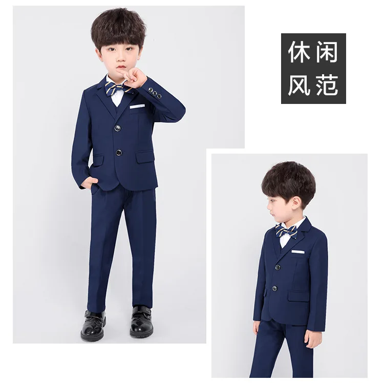 Осенне-зимний детский костюм для свадьбы, новые модные детские платья для мальчиков синий блейзер для маленьких мальчиков, жилет, комплекты одежды От 2 до 12 лет