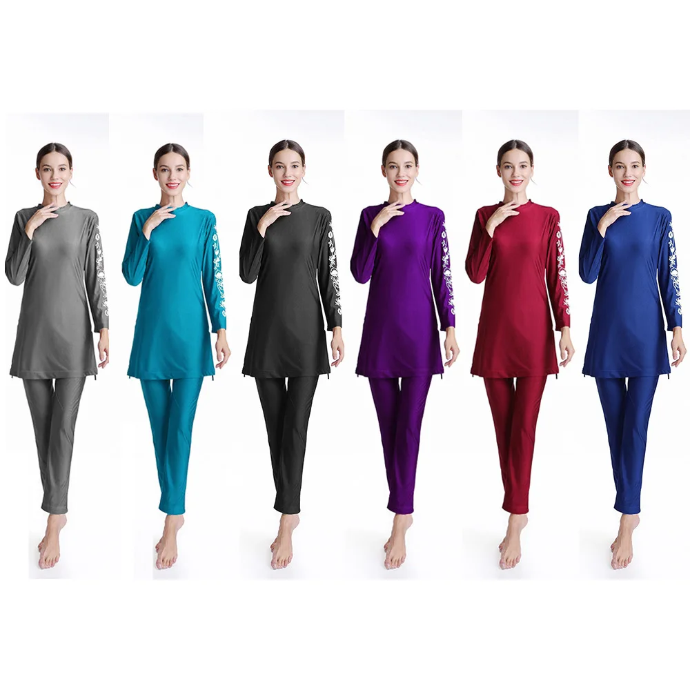 Мусульманский купальник с длинным рукавом и цветочным принтом, Модный Купальник Burkini