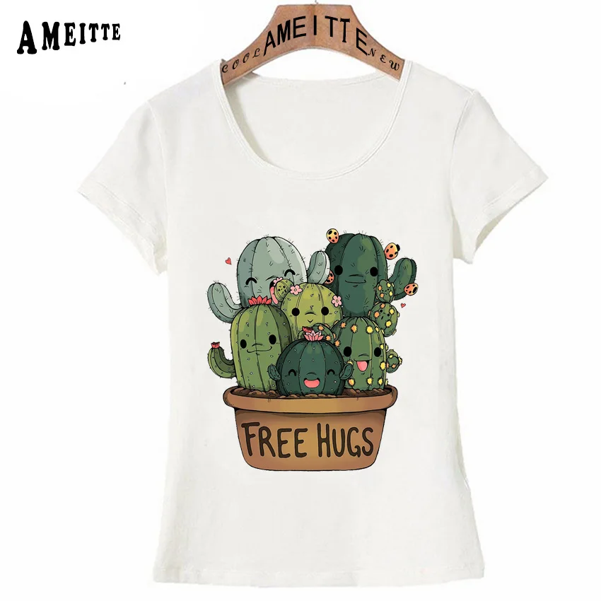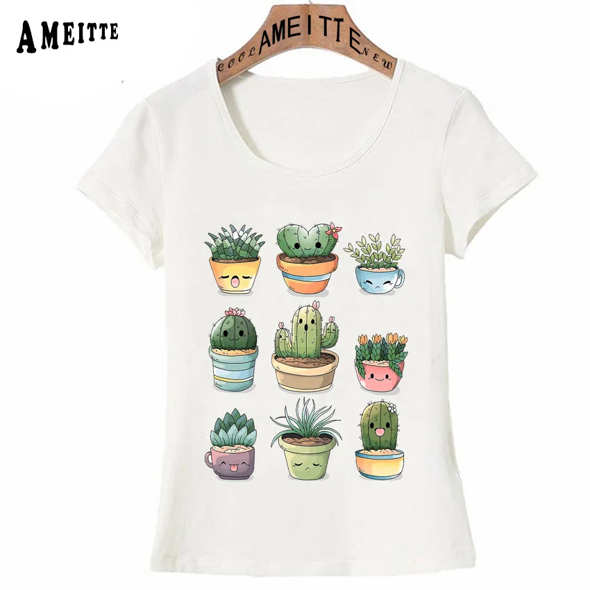 AMEITTE симпатичная футболка с принтом кактуса растений летняя модная женская футболка Мультяшные повседневные футболки хип-хоп топы с коротким рукавом для девочек