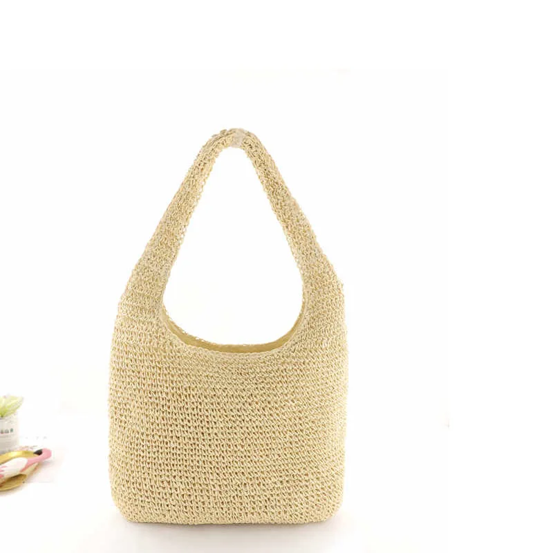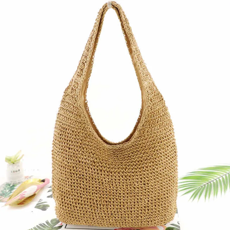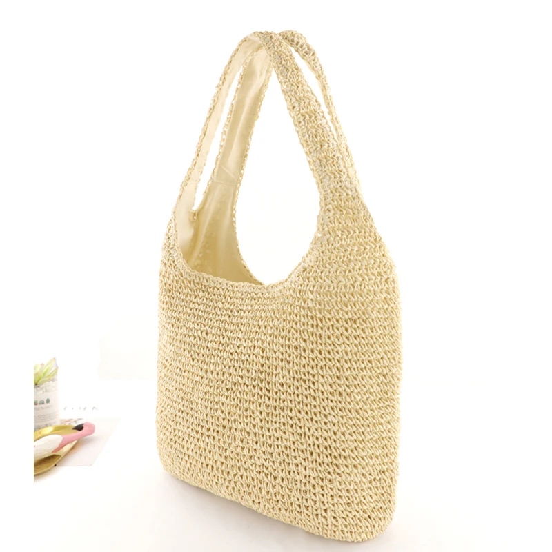 Сумка женская плетеная, вместительный пляжный саквояж ручной работы в богемном стиле, модный тоут на плечо для женщин