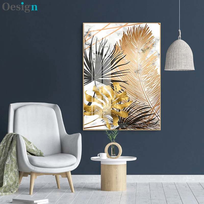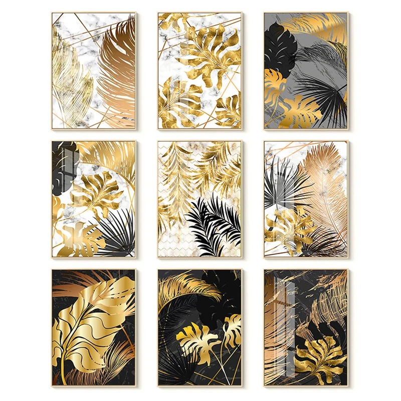 Скандинавская Минималистичная Картина на холсте с изображением золотых листьев, плакаты и печать, настенные принты, картины, украшение для гостиной и спальни
