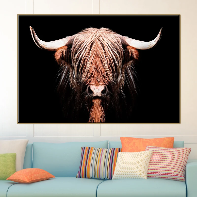 Черный и коричневый длинноволосый горный постер для крупного рогатого скота животные холст настенные картинки Украшение для гостиной Современная Художественная живопись Креативный принт на холсте прикроватная картина