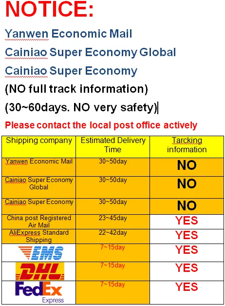 1. Номер отслеживанияПочта Китая обычный маленький пакет плюс/Cainiao Super Economy/ Cainiao Super Economy GlobalОтследить товар можно только из Китая или нет. Больше информации не будет после того, как он покинет Китай.Если вы не можете принять посылку без отслеживания информации в вашей стране, пожалуйста, не выбирайте ее.Вы можете выбрать Почта Китая зарегистрированной авиапочтой или другой экспресс-почтой, они имеют полную информацию для отслеживания.2. Добро пожаловать, чтобы отправить нам ваш список RFQ или BOM, мы предоставим вам нашу лучшую цену!Вы можете оставить нам сообщение или отправить электронное письмо, мы ответим вам как можно скорее!