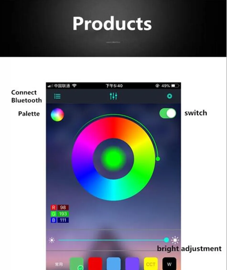 RGB светодиодный светильник с полосками окружающего света приложени...