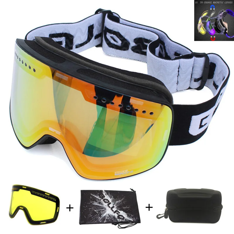 Магнитные лыжные очки с двухслойными линзами, противотуманные очки UV400 для сноуборда, лыжные очки, очки для мужчин и женщин с чехлом