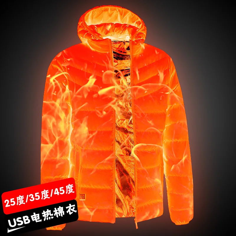 Мужская куртка с подогревом, уличная куртка с USB-зарядкой, длинным рукавом и капюшоном, теплая зимняя Термоодежда, 2021