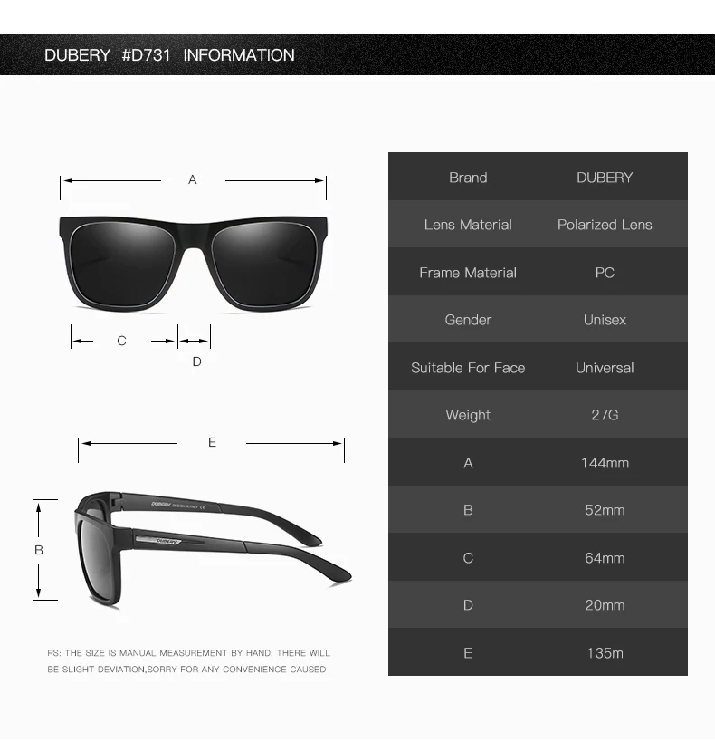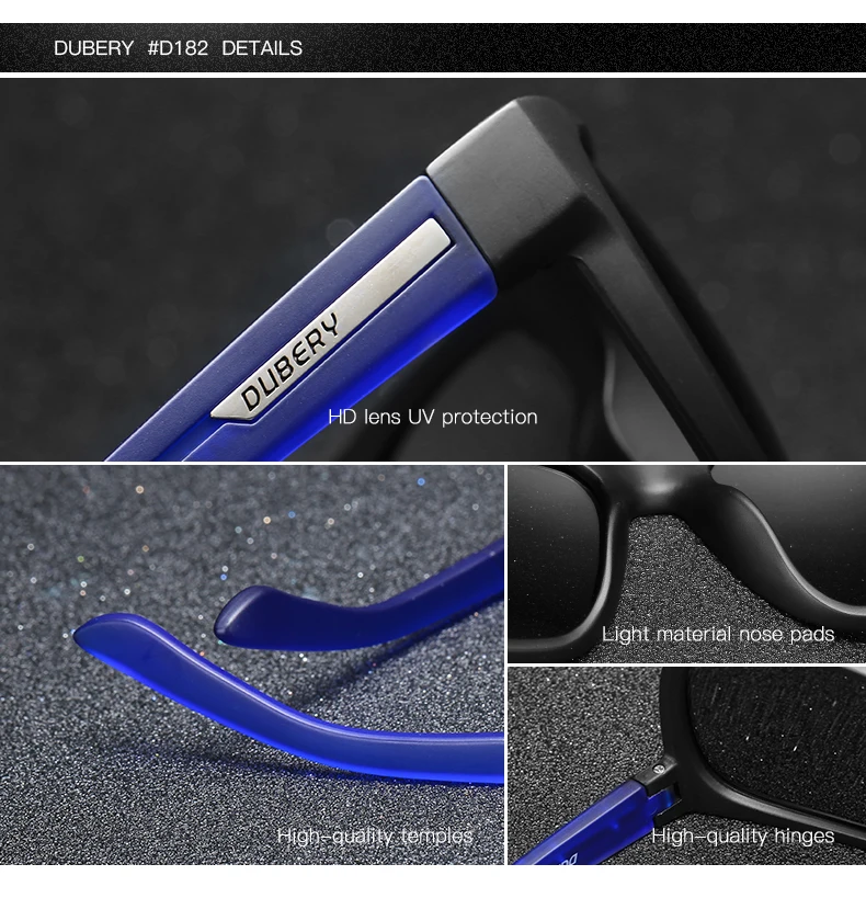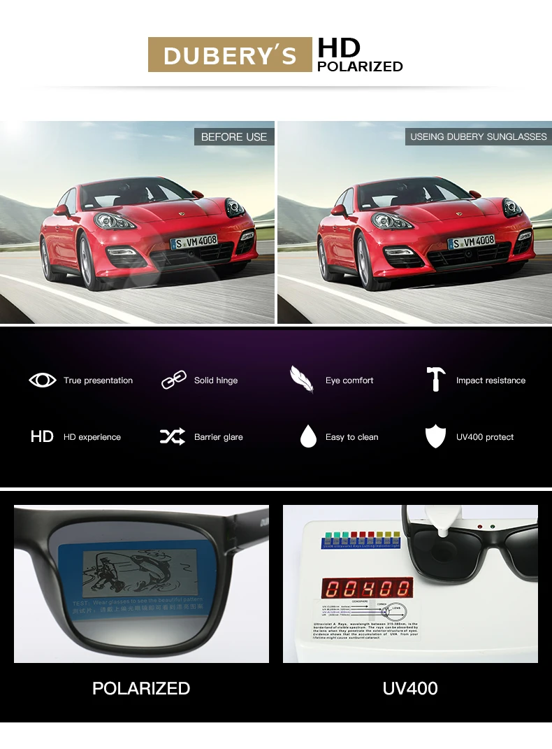 Мужские водительские солнцезащитные очки, квадратные поляризационные зеркальные очки, лето бренд DUBERY, UV400, 187