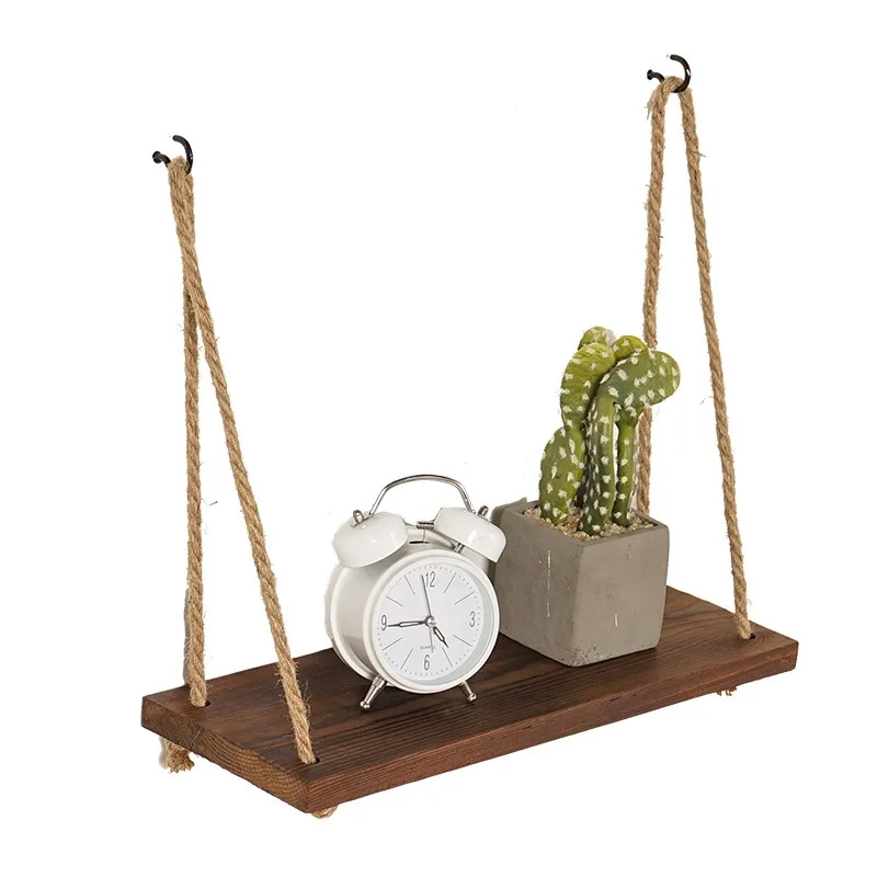 Настенная полка-слинг для хранения цветочных горшков, настенная деревянная подвески, подвесные украшения для украшения, деревянная коричневая Рождественская полка