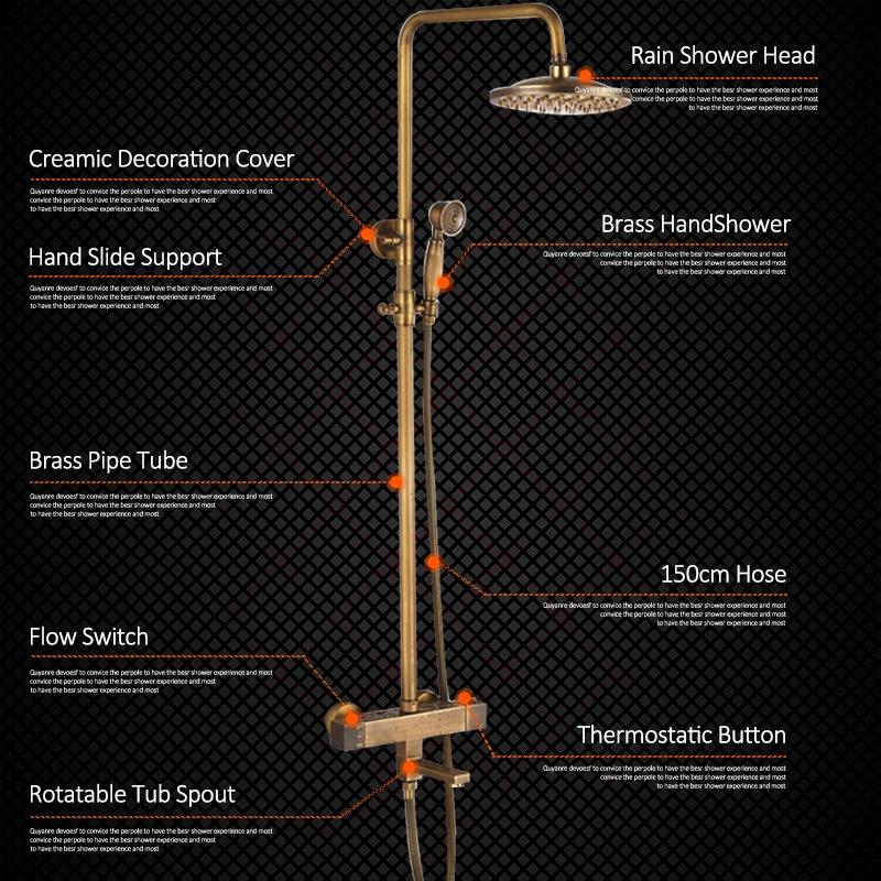 nameQuyanre Antique Brass Thermostatic Shower Faucets Set Brass Rainfall S