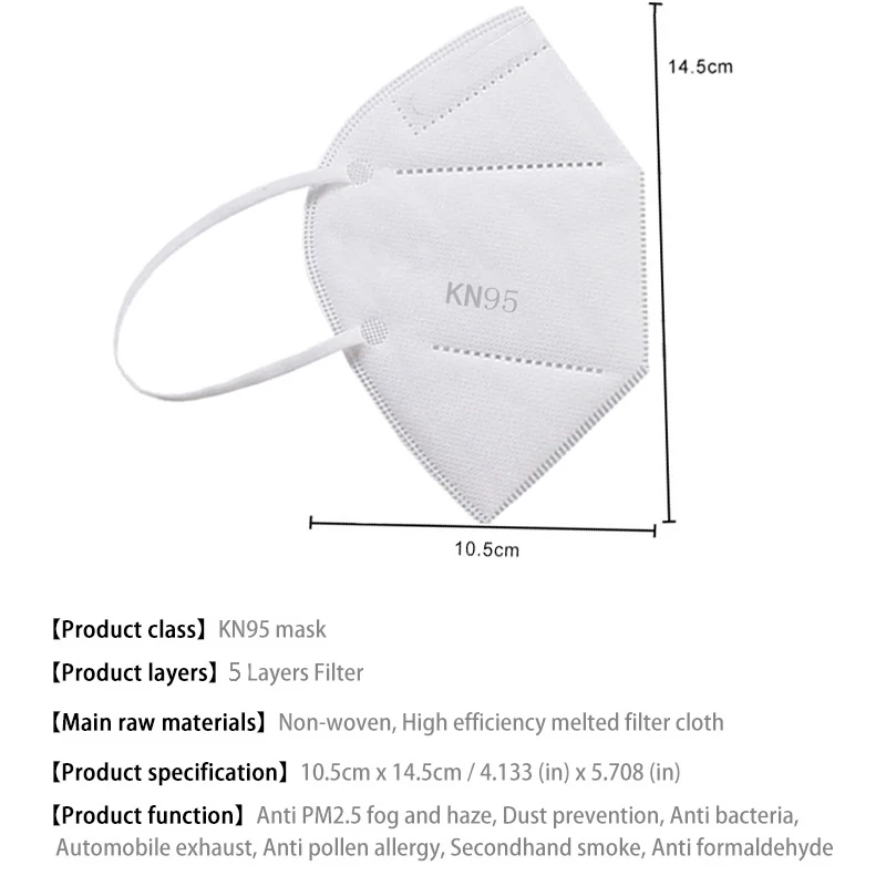 Маска для лица KN95 95% PM2.5 FFP2 CE 5 слоев, дышащая защитная мас...