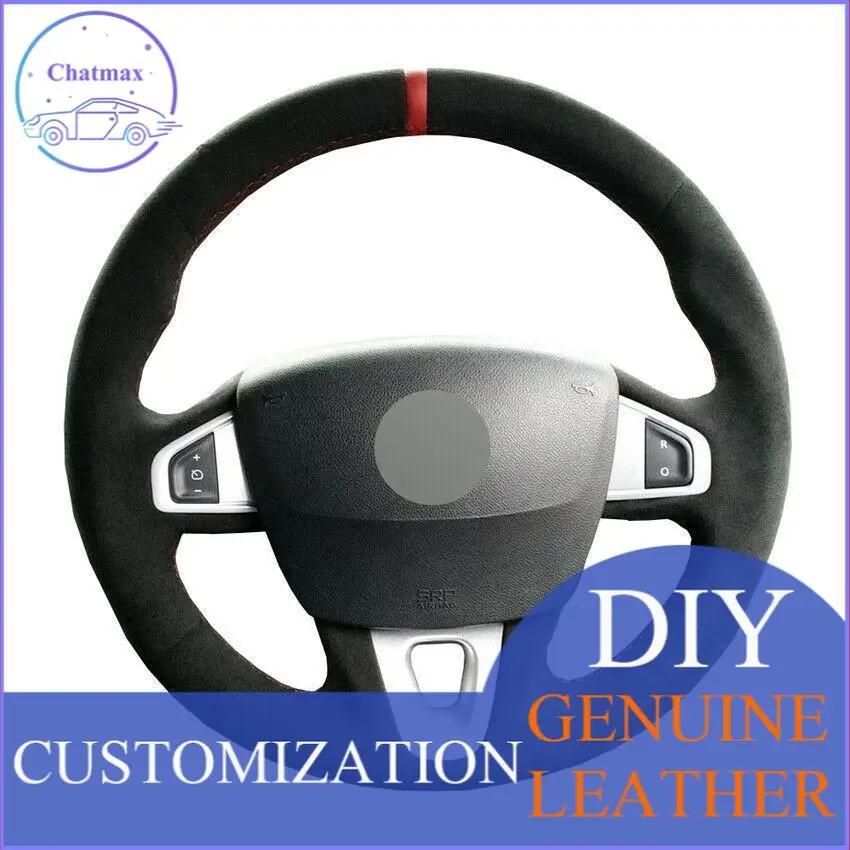 Чехол на руль для Renault Megane 3 Coupe RS 2010, сделанный на заказ, из черной замши, ручная работа, противоскользящий, подходит для всех сезонов