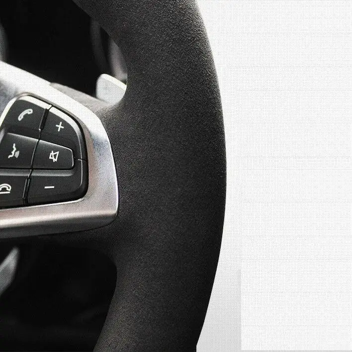 Черная замша Вручную прошитый чехол рулевого колеса автомобиля для ...
