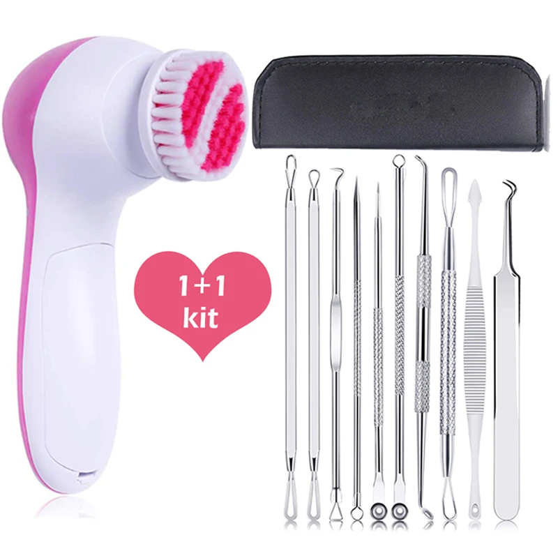 Щетка для очищения лица 5 в 1 Электрический массажер для лица с 10 шт./компл.Средство для удаления черных точек, средство для очистки пор для ухода за кожей