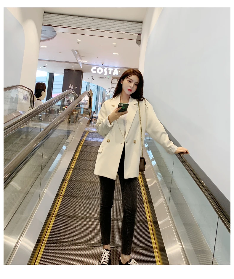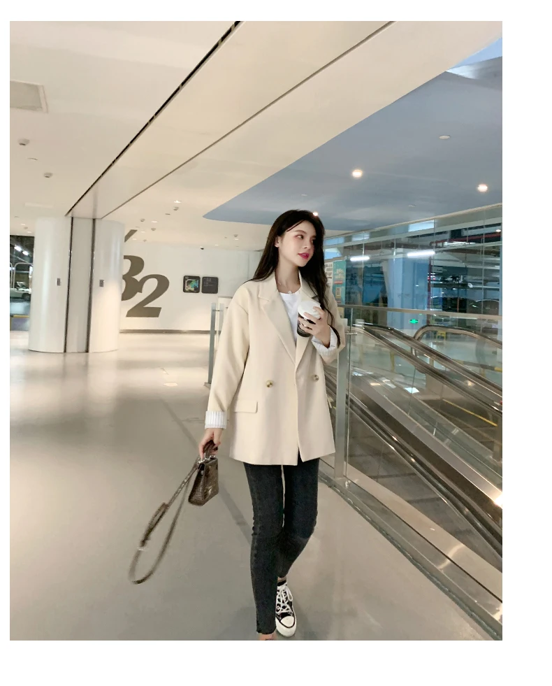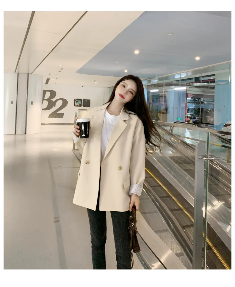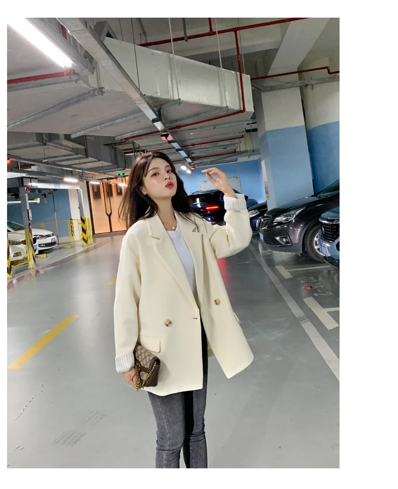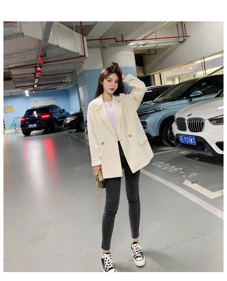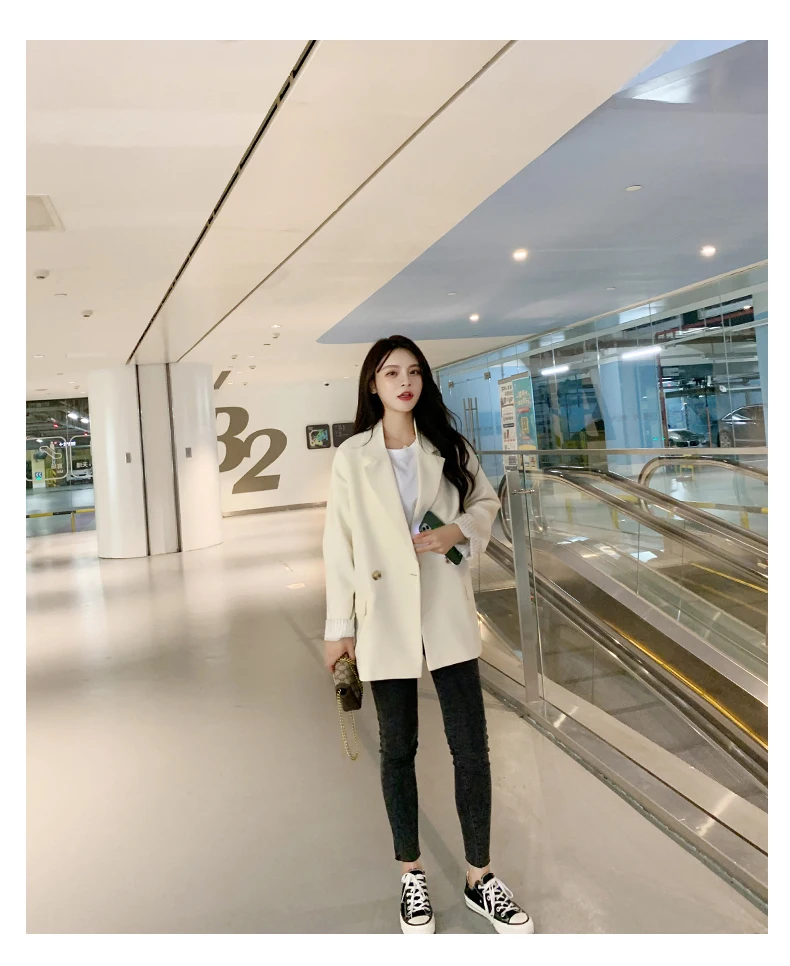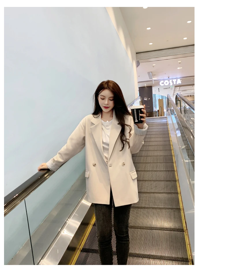 Женский офисный костюм, однотонный Повседневный пиджак с длинным рукавом и английским воротником