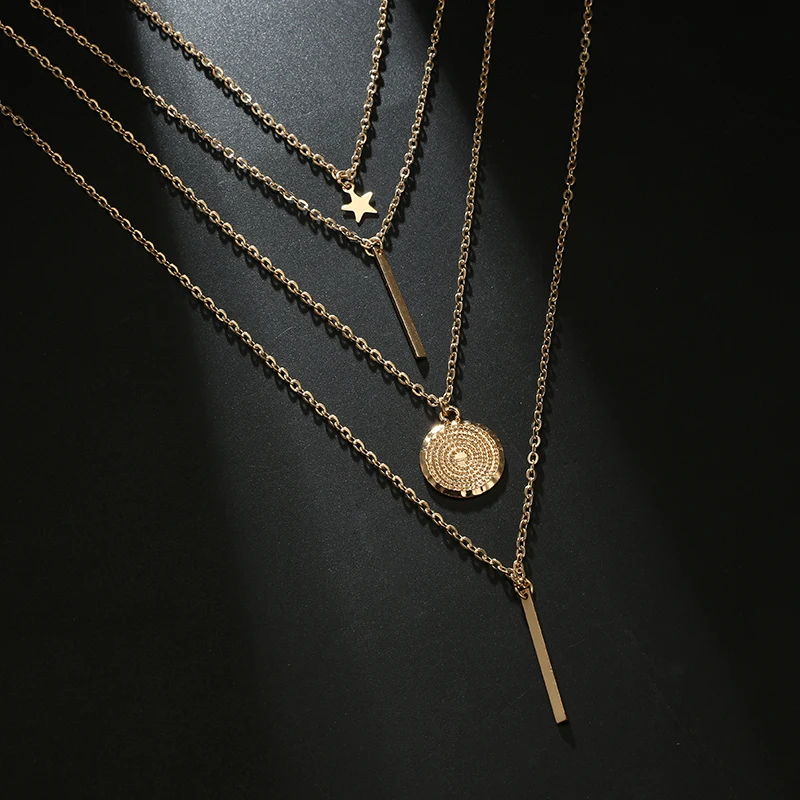 Богемное круглое многослойное ожерелье с пентаграммой, Золотая цепочка, чокеры из сплава, ожерелье для женщин, эффектное ожерелье, ошейник, женский кулон